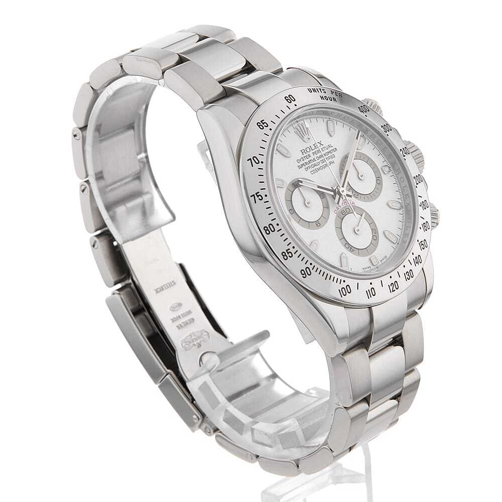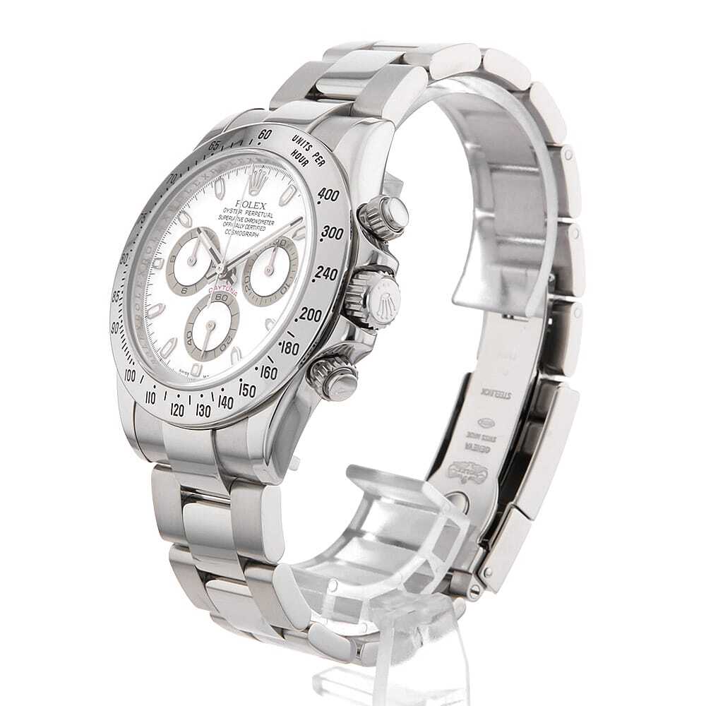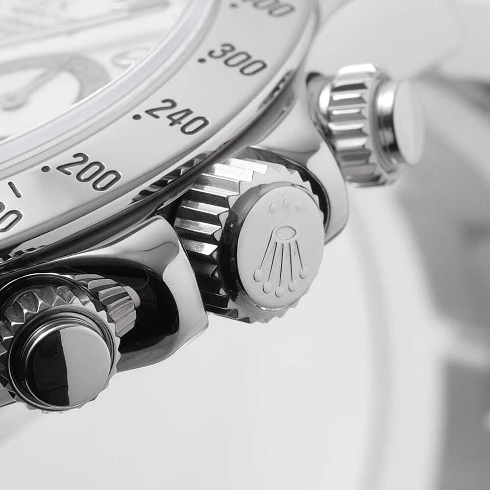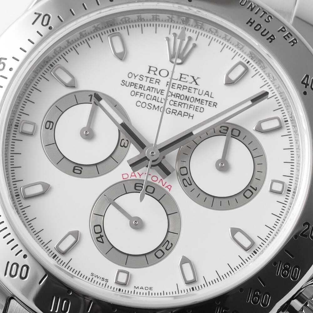 モデル情報 | 生産終了した今なお、時計ファンから熱い支持を得続けるデイトナRef.116520。ロレックス初の完全自社製クロノグラフとなるCal.4130を搭載した、同社にとって意義深いモデルでもあります。さらに、2000年~2016年の製造期間の中で随所にブラッシュアップが加えられており、高い安定性や耐久性、実用性を獲得しました。ステンレスで形成されたベゼルが精悍な顔立ちで、全体をスタイリッシュに引き締めます。パワーリザーブ約72時間。100m防水。 |