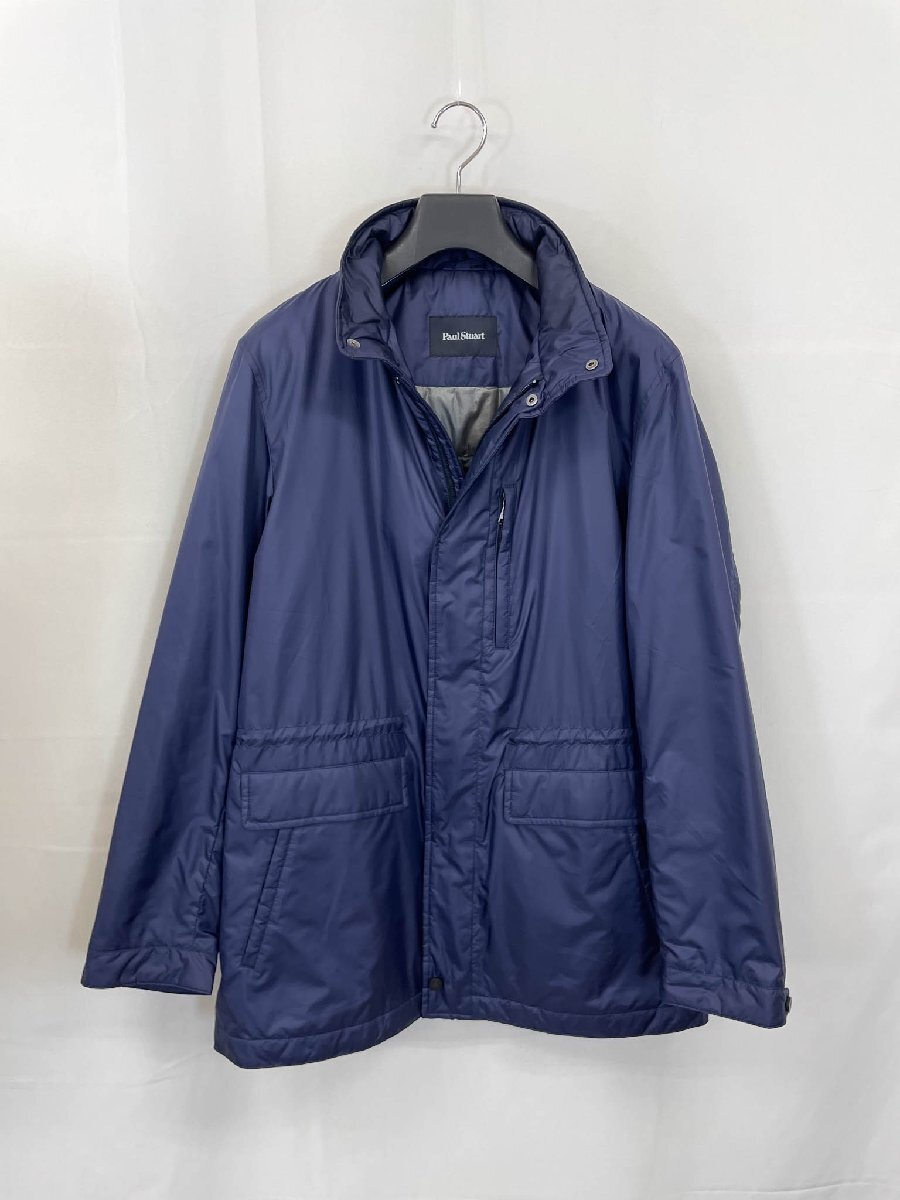 美品【Paul Stuart ポールスチュアート】中綿入り フード収納 スタンドカラーコート (メンズ) 50 ネイビー系 ジップアップ ◇32MW4068