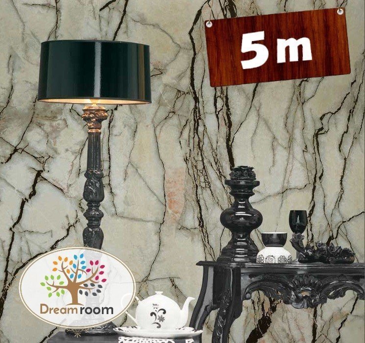 【 5m 】 大理石模様 ブラック×ホワイト B05 壁紙 シール 61cm幅 DIY 防水 カッティングシート クロス 糊付き ウォールペーパー