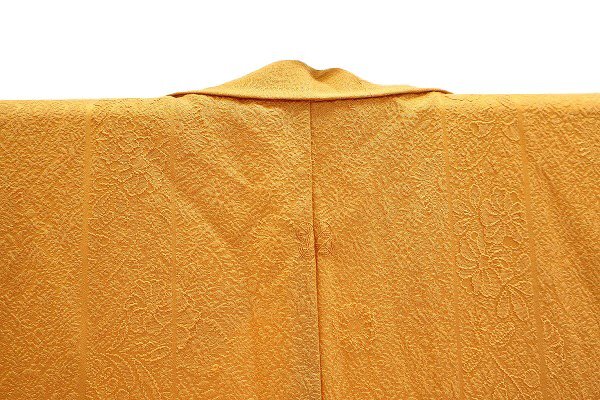 | 美品 色無地 地紋 花文 山吹色 身丈158.5cm 裄丈68cm 袷 正絹 仕立て上がり お洒落 フォーマル 着物フィ m-8330 |