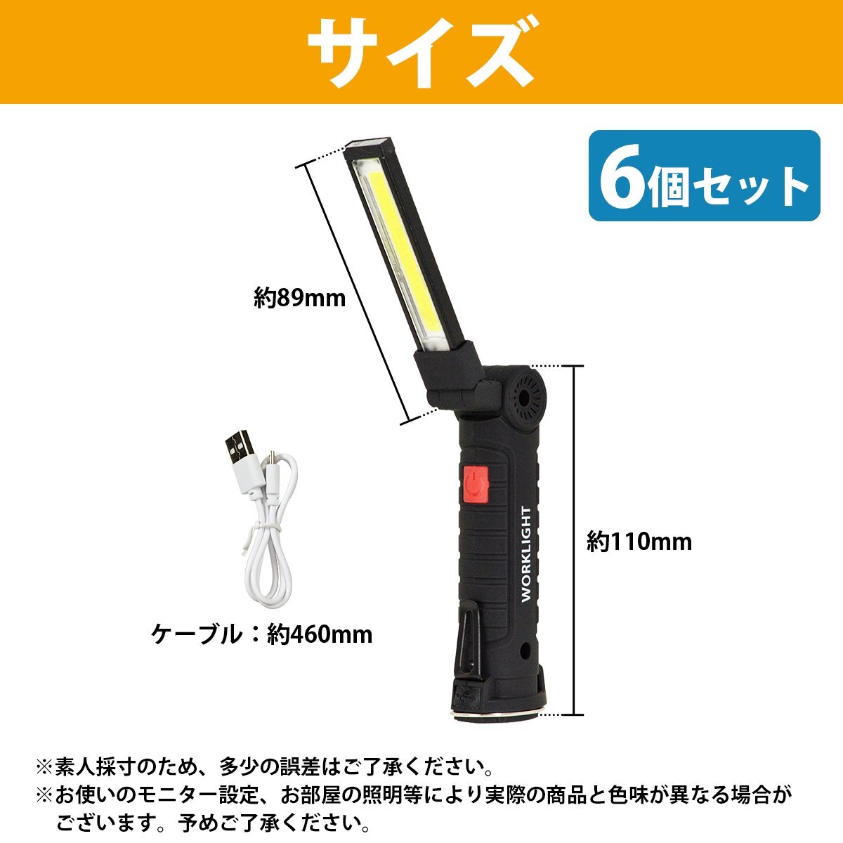 【新品即納】6個セット 967円/個 LED ライト COB 作業灯 防水 360度 回転 折畳み式 USB 充電式 懐中電灯 マグネット 多機能 ワークライト