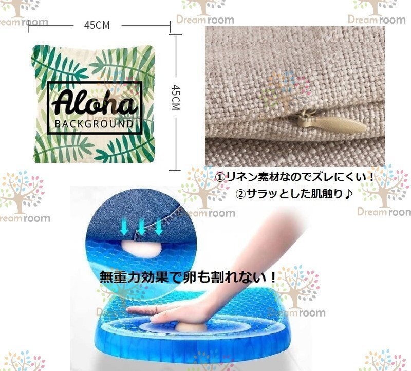 DRボタニカルデザイン ゲルクッション【F-100-14】無重力 卵が割れない 骨盤矯正 腰痛 産後ケア ジェルクッション 座布団 オフィスチェア