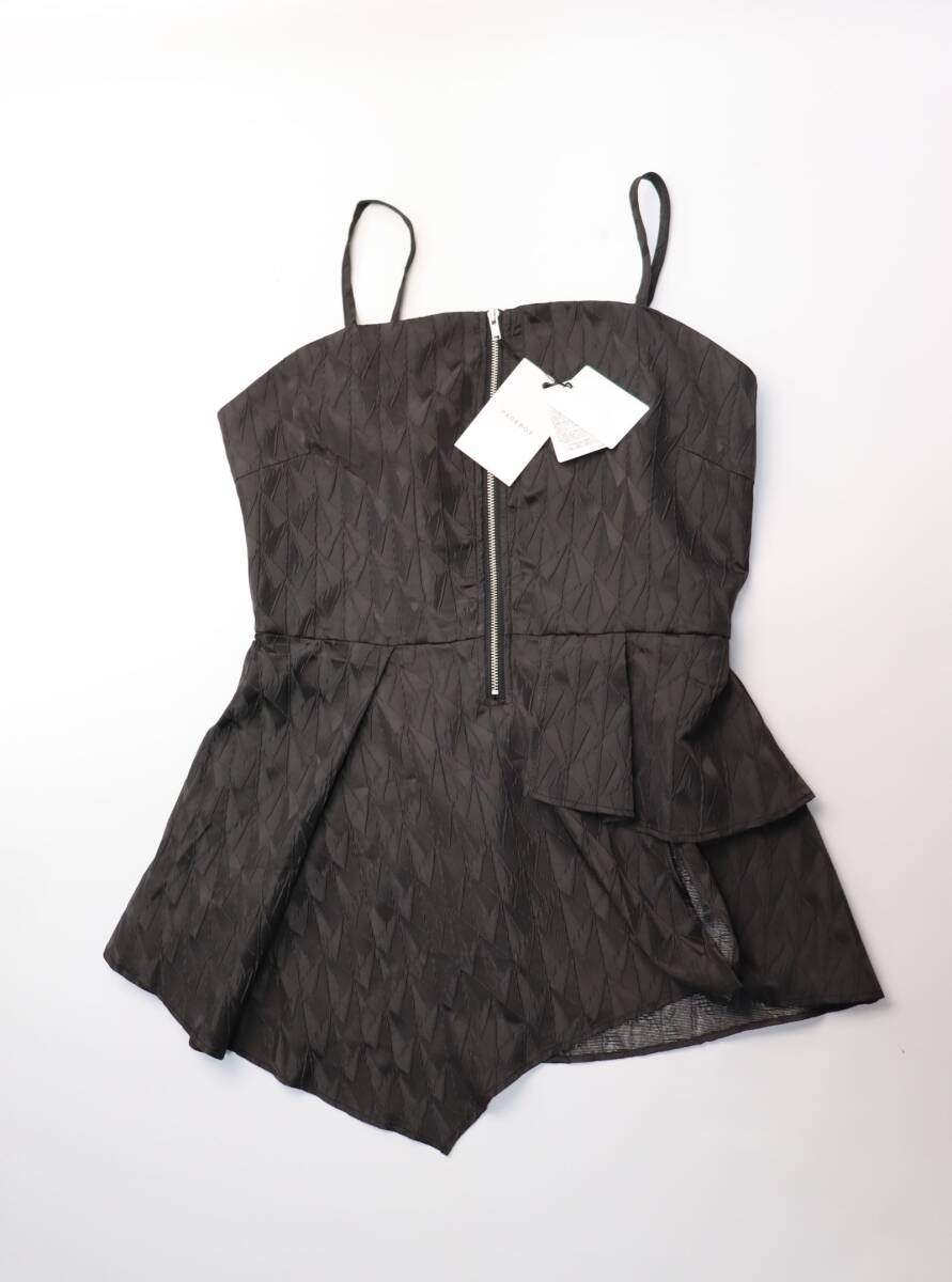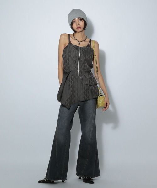 PAGEBOY (ページボーイ) アシメJQキャミチュニック ブランド商品説明… \表情の有る凹凸感が特徴のジャガード素材で仕立てた、アシンメトリーなシルエットのキャミチュニック/ ーーー 程よくハリのある生地がシルエットをキープし、切り替えから広がる裾は、タック&ミニペプラムのデザインで立体的な動きを演出します。 ボディはフィット感のある美シルエットながら、背中はゴムシャーリングでストレスフリー。 前のメタルジップ仕様や裾のカッティングで、甘すぎないモードなアクセントに。 ーーー 一枚で主役級の存在感。夏にはタンクやTシャツと、秋口にはシアーインナーとのレイヤードなど、インナー次第でロングシーズン活躍してくれるアイテムです。 ーーー ご質問はお気軽にお問い合わせください。 ◆カラー:ブラック ◆素材:ポリエステル100% ◆サイズ:フリー 身幅44、着丈63~73、ウエスト68 ◆定価6,990円 |