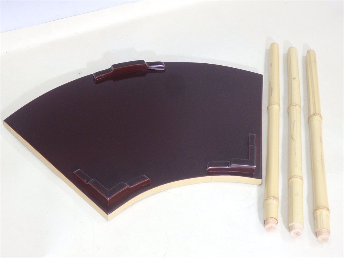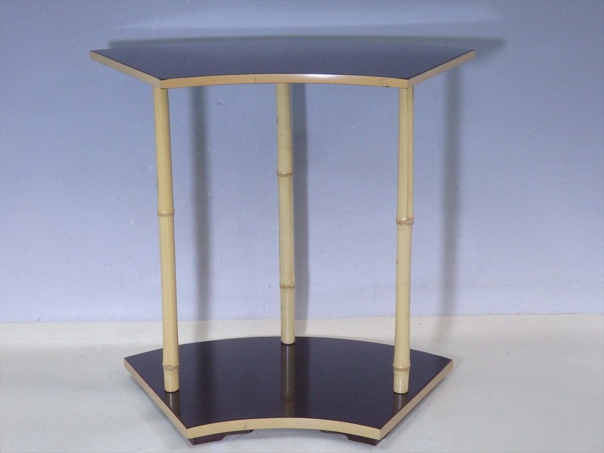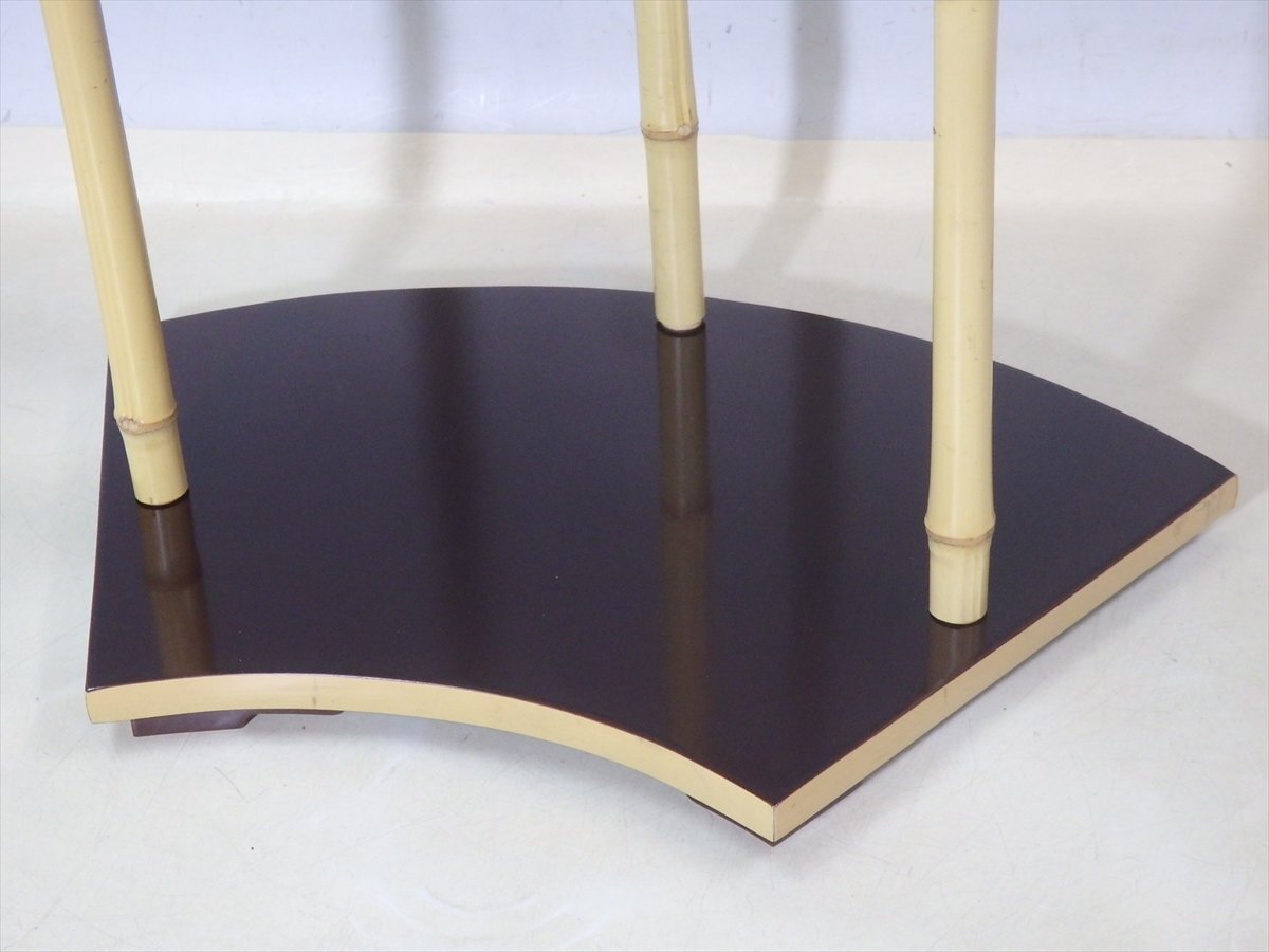 【管理番号5-1001011-12 スタッフコメント:iy】  ☆溜塗り、板の側面は竹張り、柱も白竹。ほとんどキズはなく、ガタツキも柱の揺れもありません。状態は良いと思います。ダンボール箱入り。