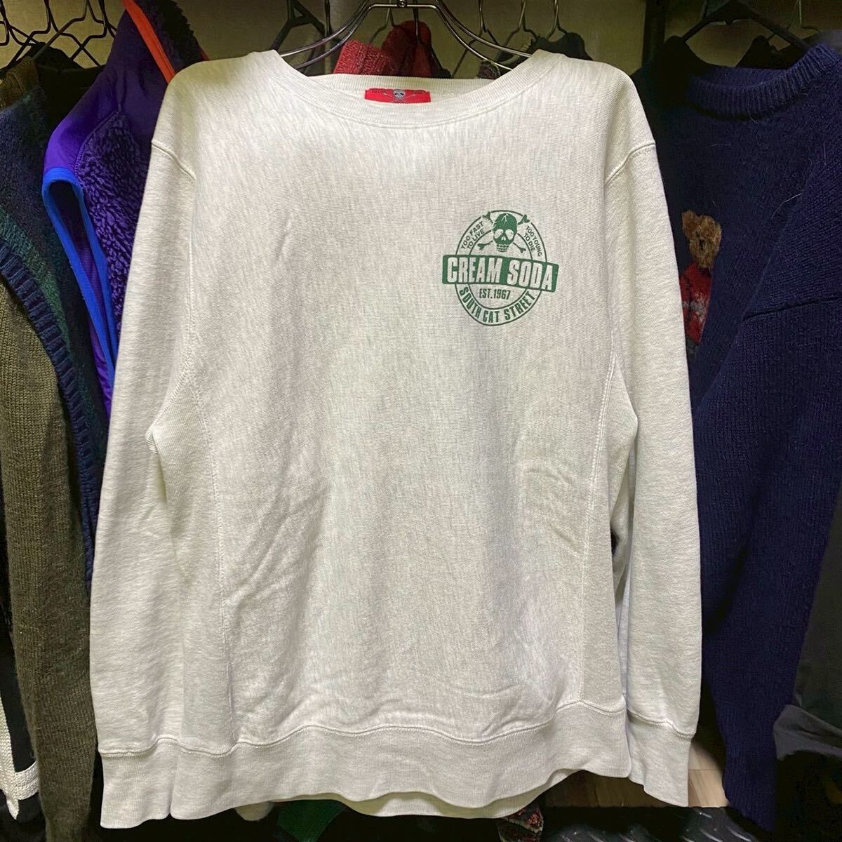 1円スタート CREAM SODA クリームソーダ 長袖 スウェット トレーナー ドクロ 骸骨 プリント