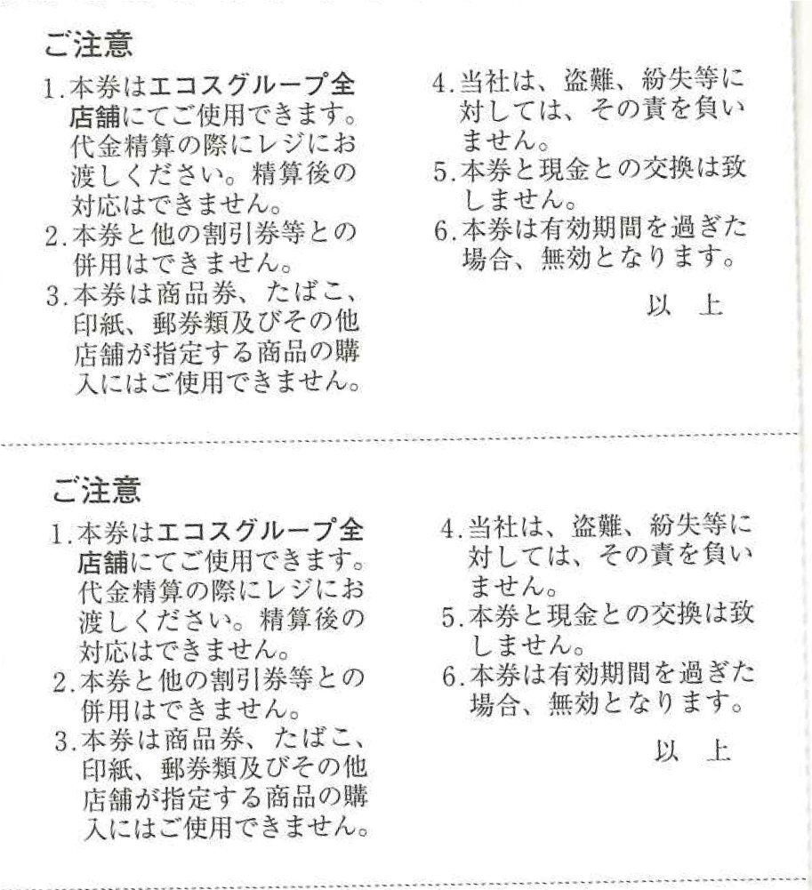 商品名:エコス 株主優待券 3000円分(100円×30枚綴)[2025年11月末まで]