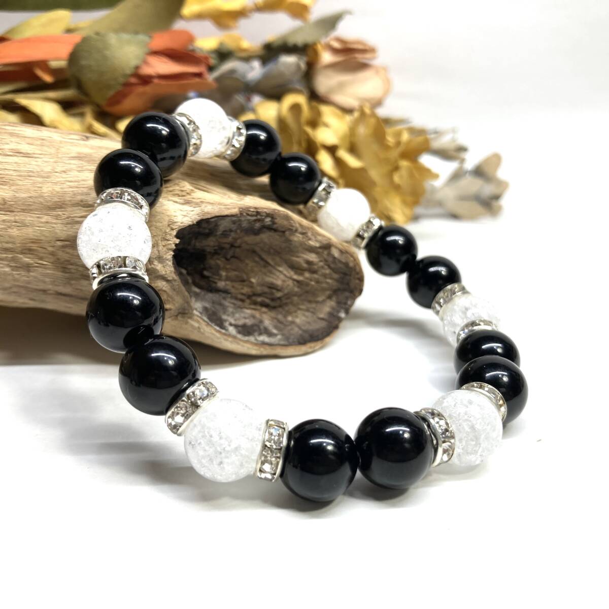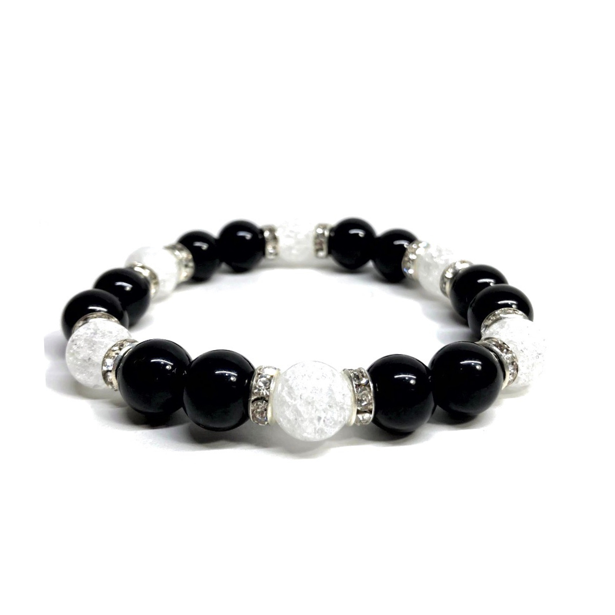 こちらは、モリオンとクラック水晶を組み合わせたパワーストーンブレスレットです。間にはロンデルを挟み高級感あるデザインに仕上げております。石大きさは腕にも馴染みやすいように10mm玉で内径約18cm(伸可能)です。(サイズ変更の場合は取引ナビにてご連絡をお願いします。) 数に限りがございますので気になる方はお早めにどうぞ。