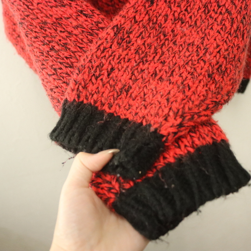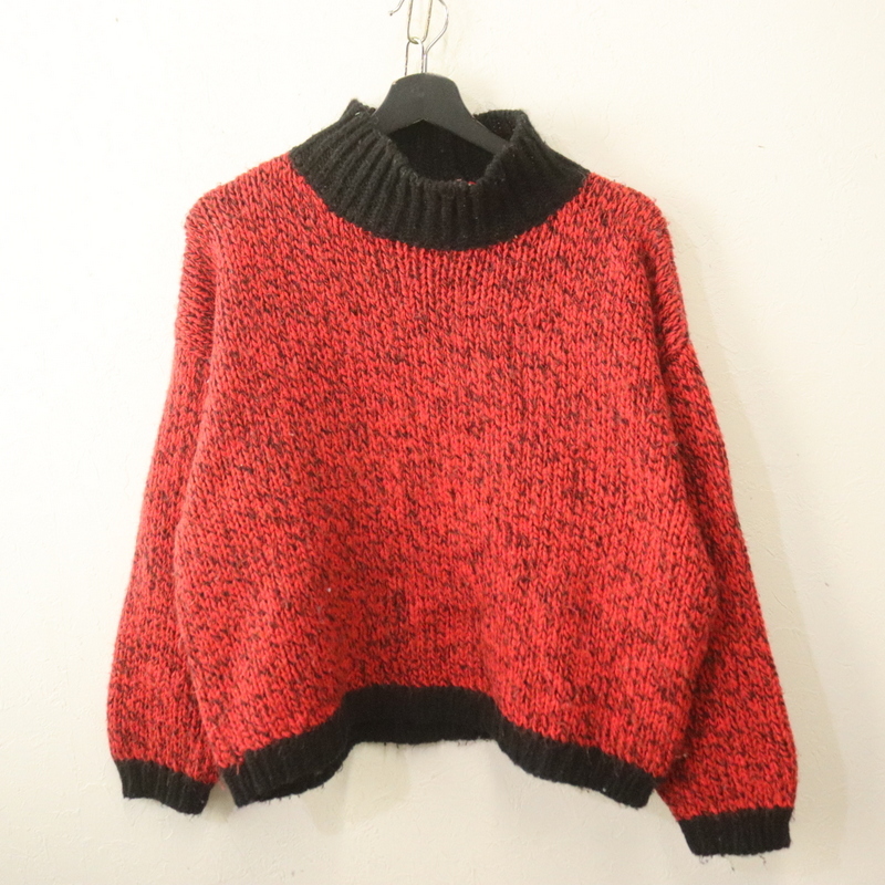 a890 80sビンテージ D.D.SLOANE ウールニットセーター■1980年代製 表記Mサイズ レディース 赤 レッド ミックス アメカジ 古着 古着卸