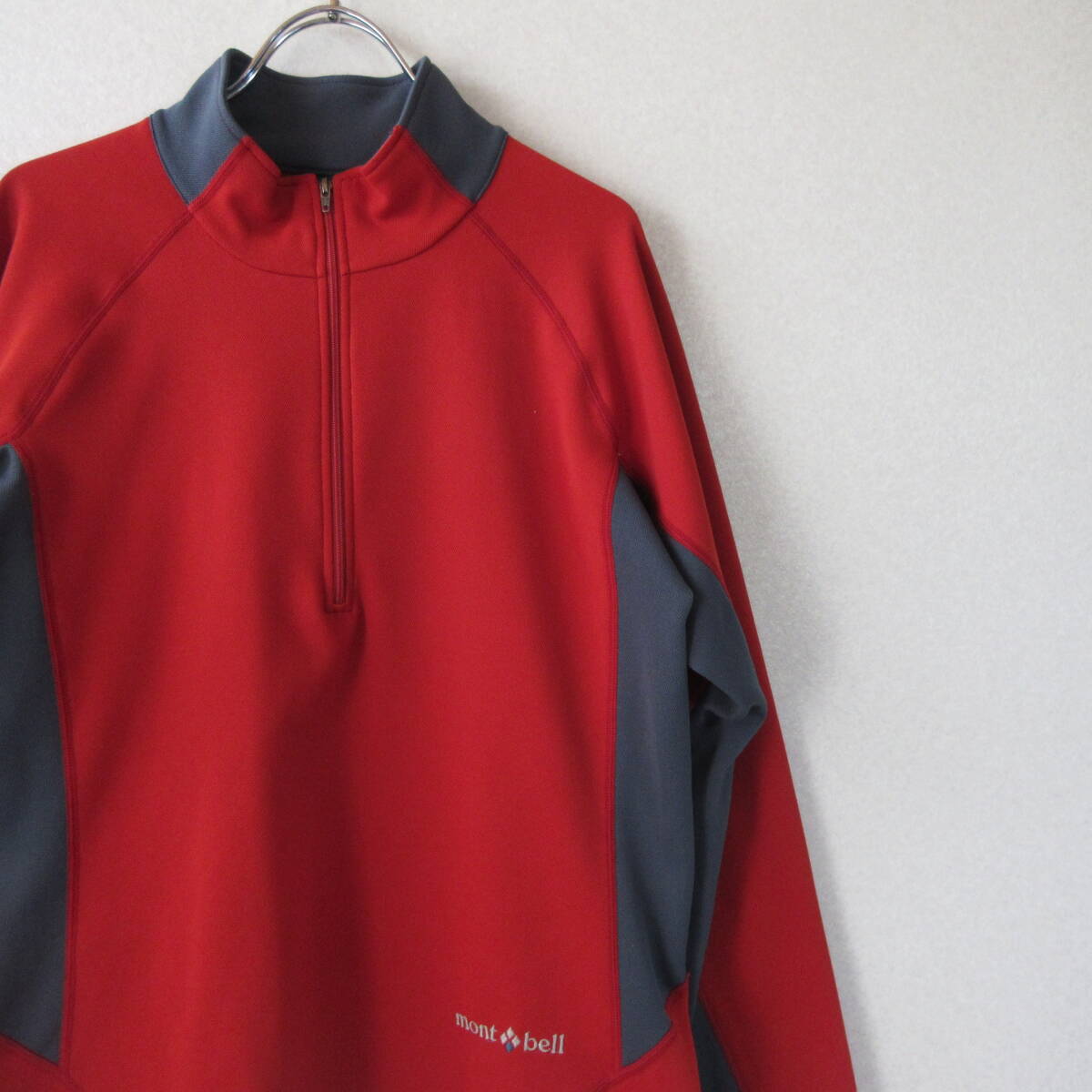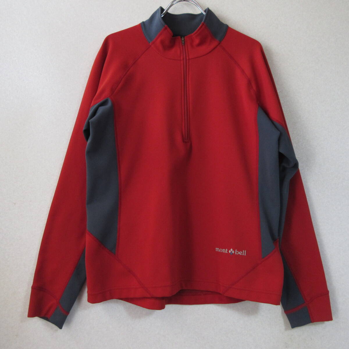 ○良品 montbell モンベル◆ハーフジップ 長袖 シャツ アウトドア◆メンズ レッド系/グレー Sサイズ