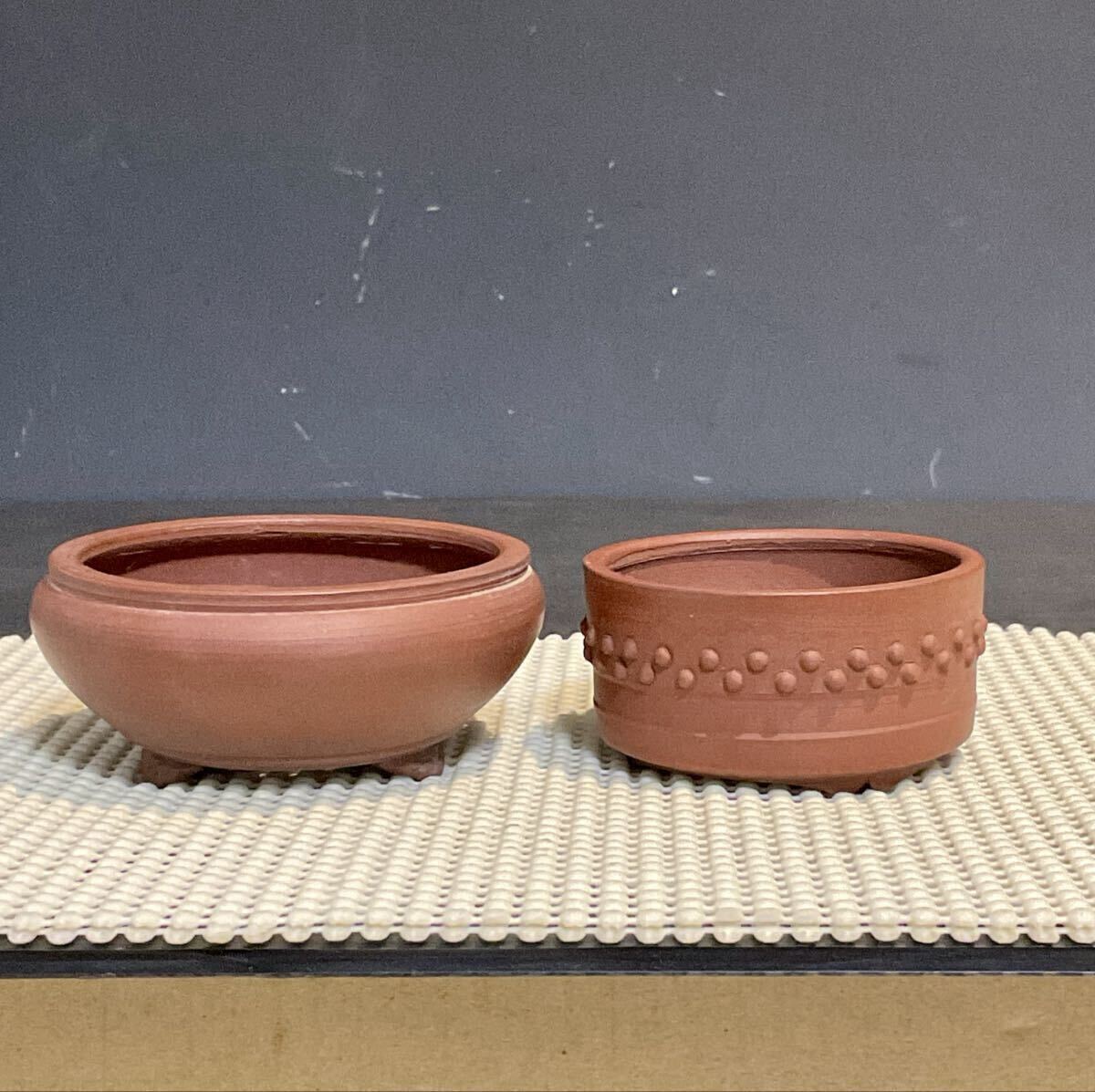 「美芸」朱泥ミニ盆栽鉢 2点まとめて