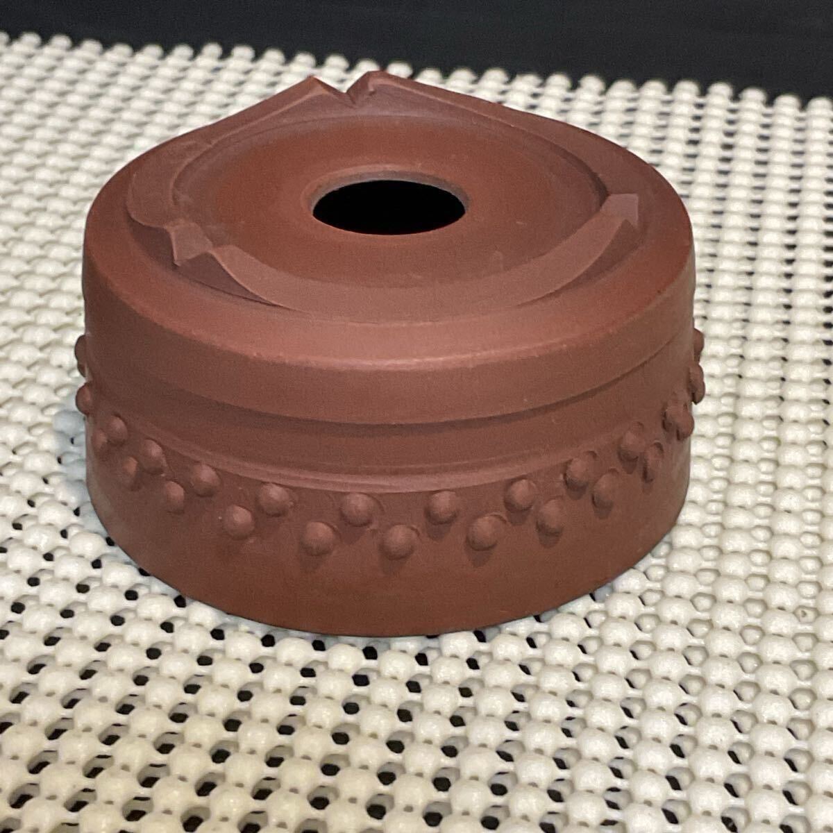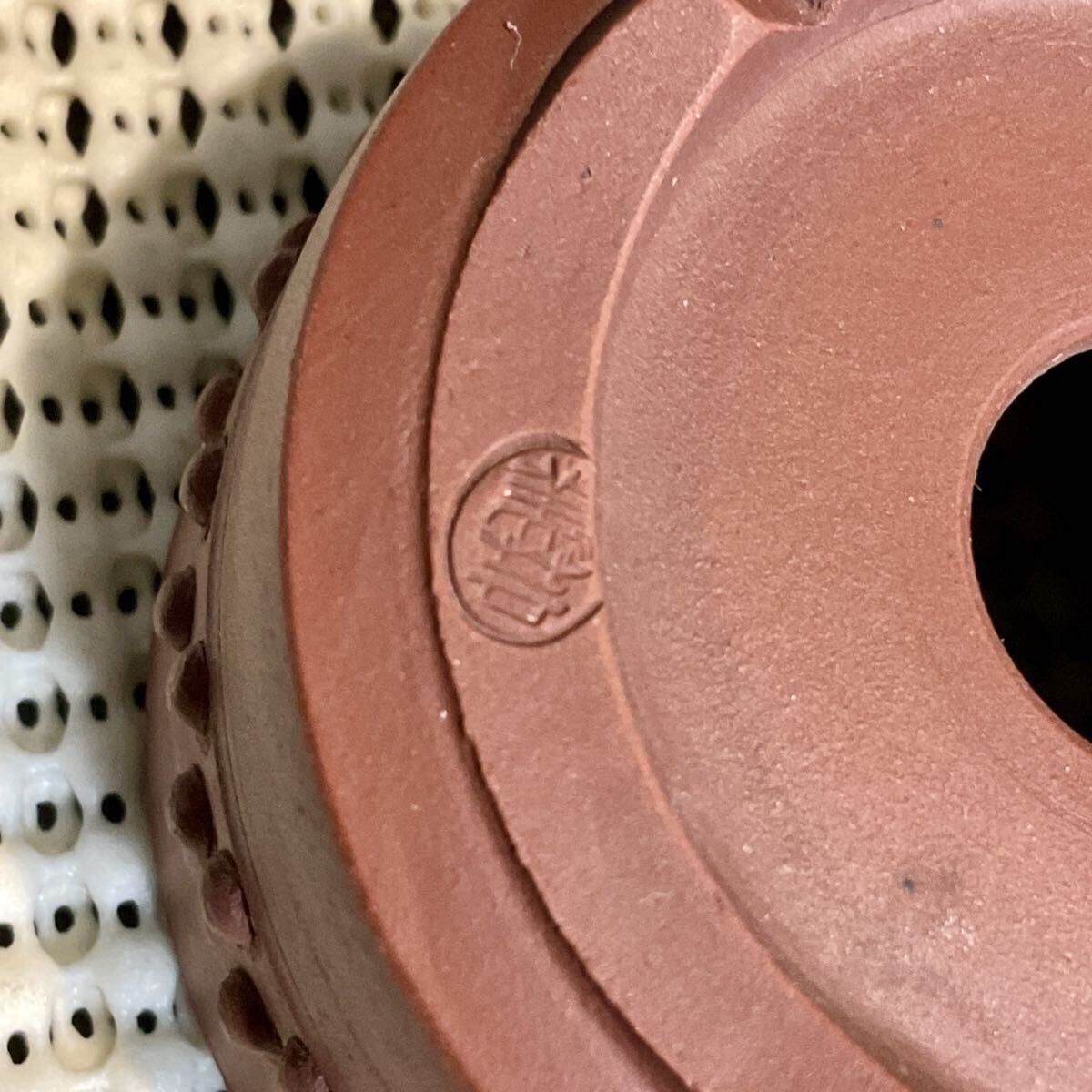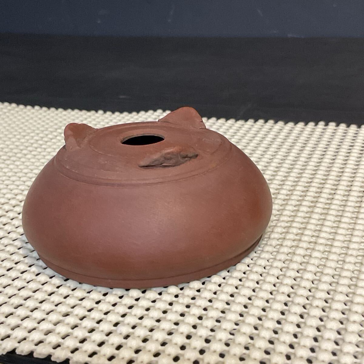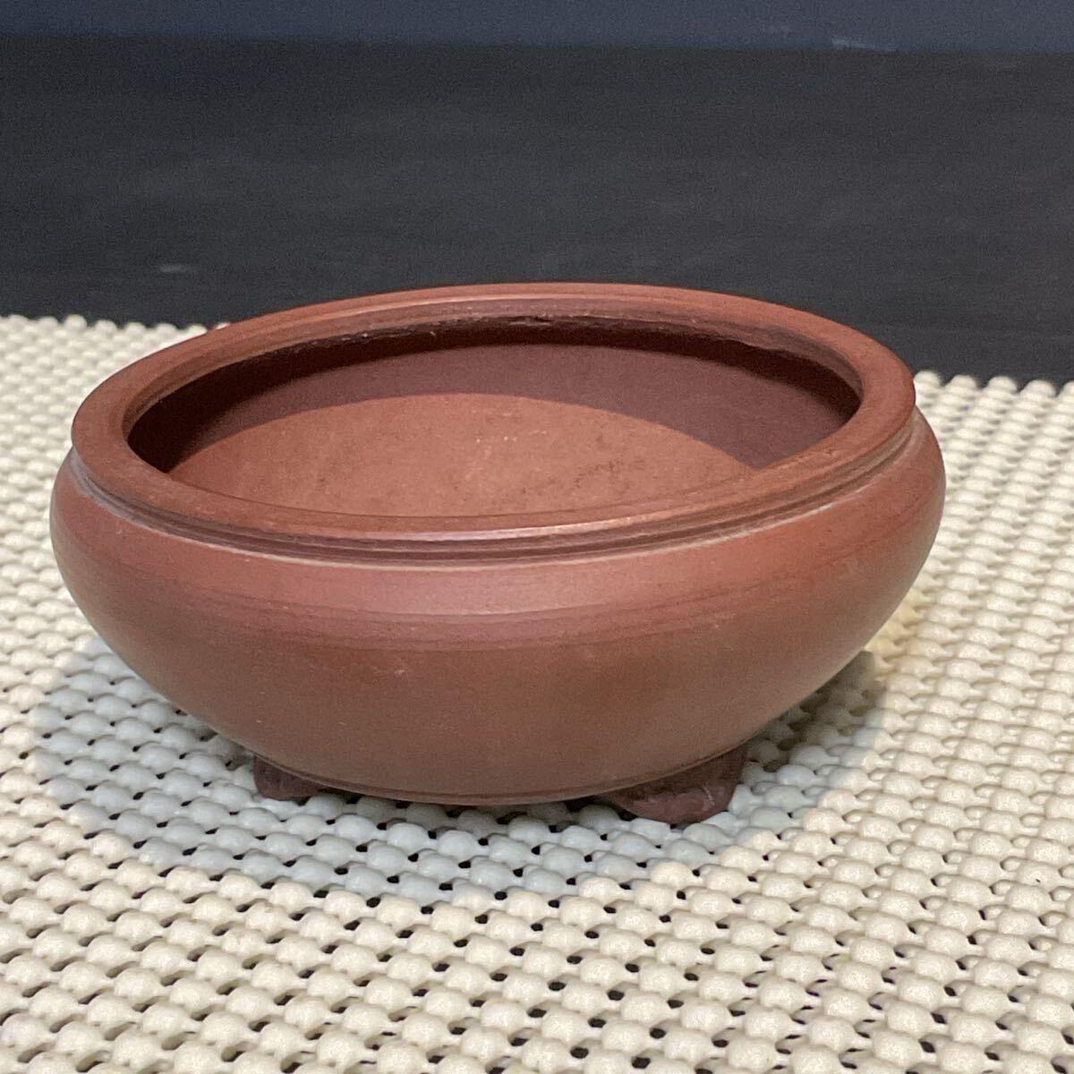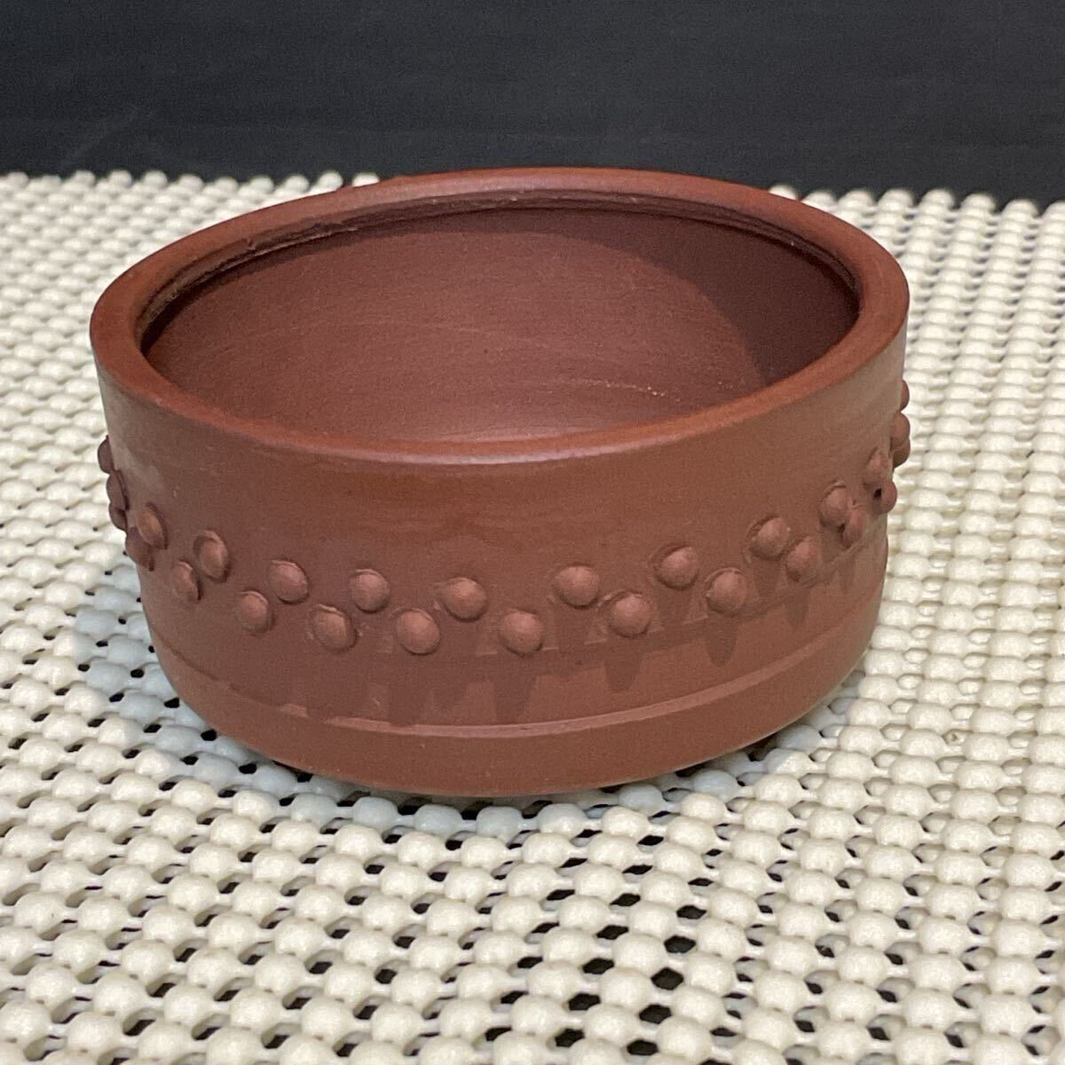 丸みのある柔らかなフォルムと滑らかな赤土の銘入りミニ盆栽鉢です。