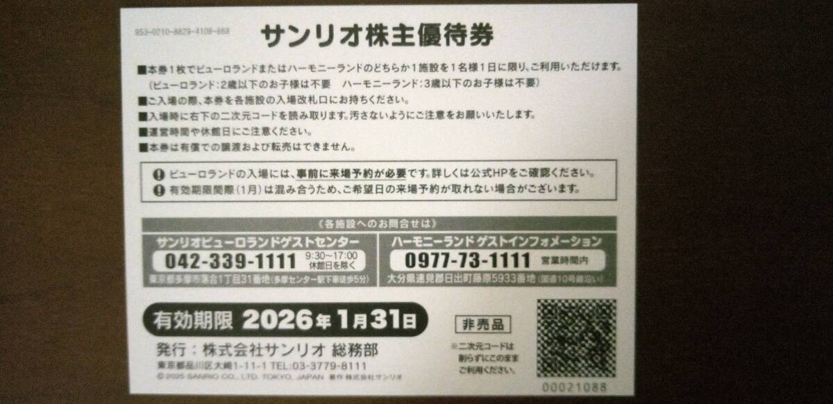 サンリオピューロランド 株主優待券 3枚