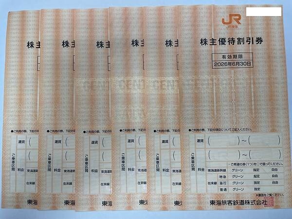 大黒屋 ☆ 送料込 ☆ JR東海株主優待割引券 ×6枚 ☆ 期限2026年6月30日まで