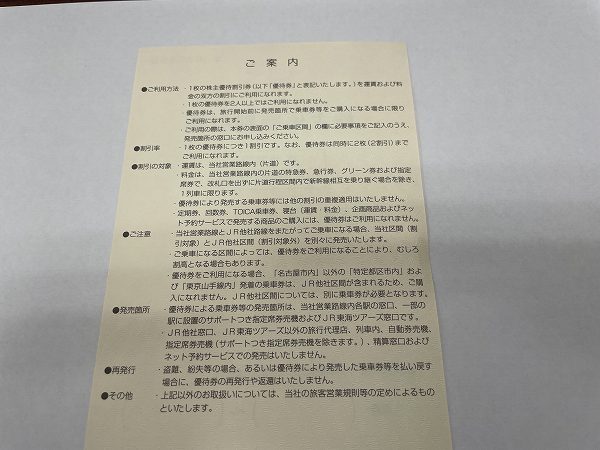 ・JR東海株主優待券×6枚