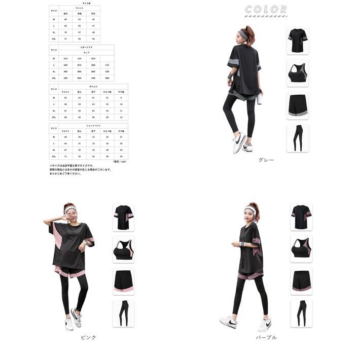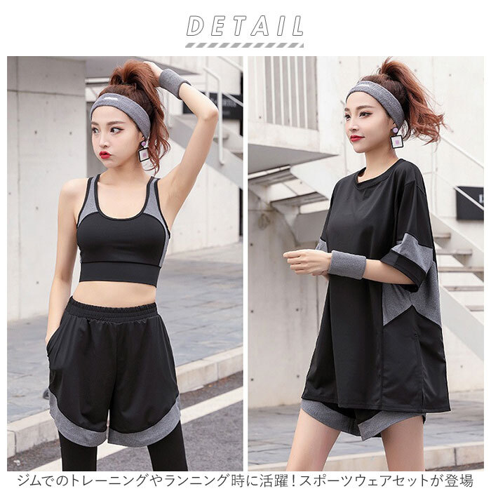 商品説明 | ・・ジムでのトレーニングやランニング時に活躍!スポーツウェアセットが登場。 ・半袖、スポーツブラ、レギンス、ショートパンツのお買い得な4点セット♪ ・伸縮性があり、動きやすい♪通気性にも優れ運動している時でも蒸れにくく快適に過ごせる! ・半袖のトップスは胸元が見えないラウンドネックタイプ。 ・ブラはカップの取り外しができ、外して洗えば洗濯時型崩れの心配ナシ。 ・ショートパンツは裾にゆとりにあるデザインだから、レギンスと一緒に穿けば気になるお尻や太ももまわりのシルエットをカバーしてくれる。 ・セットアップだからコーデに迷わず着こなせる。 ・スポーツ時だけじゃなくお家でのリラックスタイムの使用にもおススメ。 |