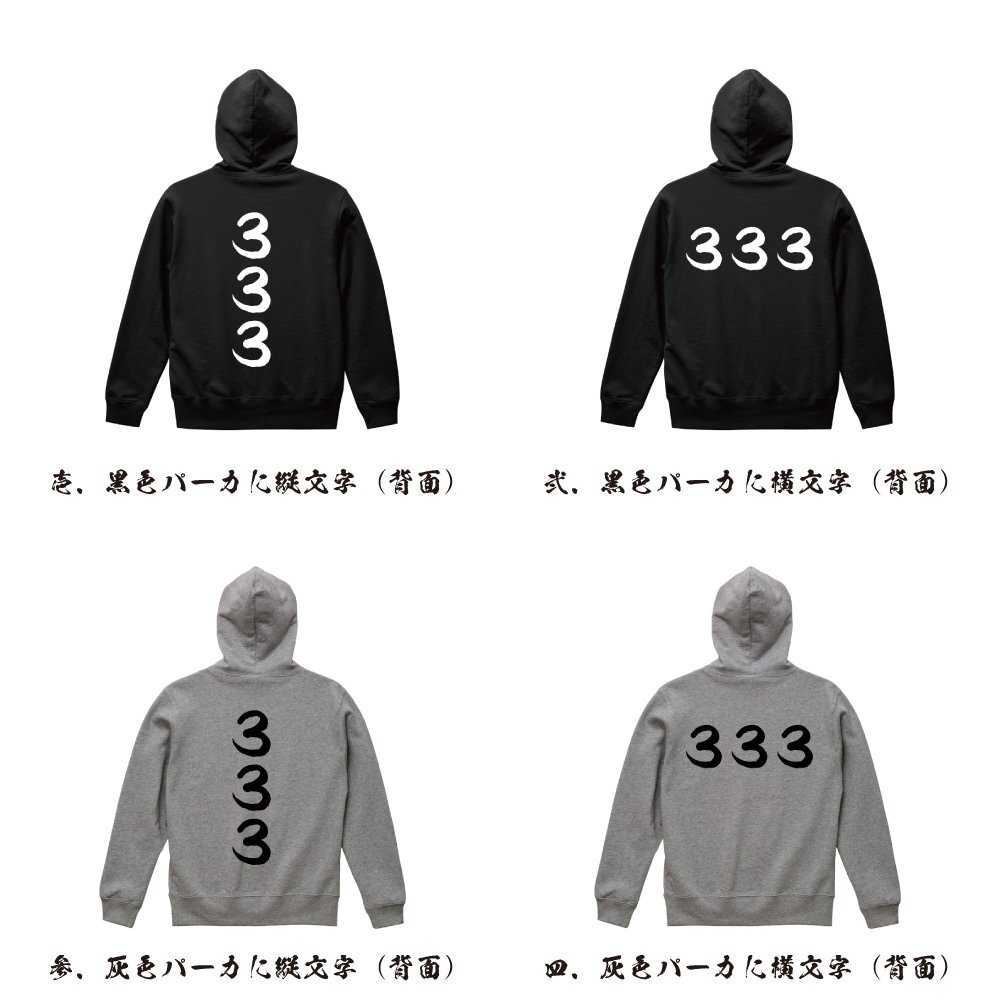 333 オリジナル パーカ 書道家が書く プリント フルジップ パーカー S M L XL XXL 110 130 150 【 パチンコ・パチスロ 】
