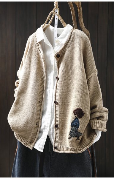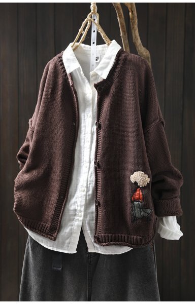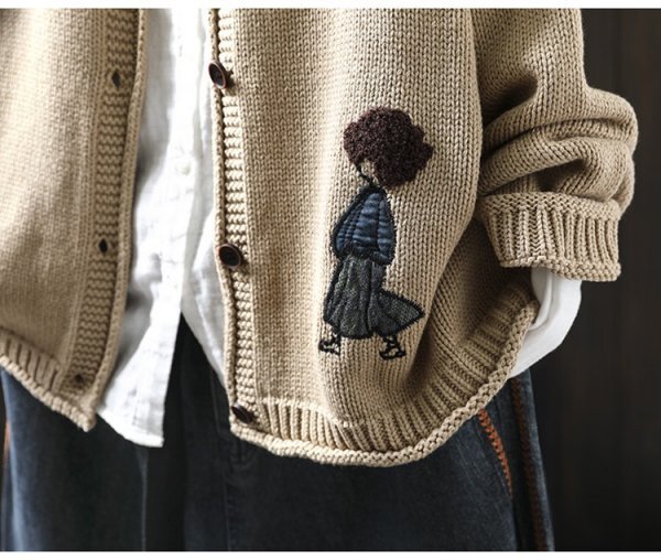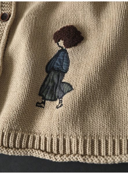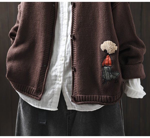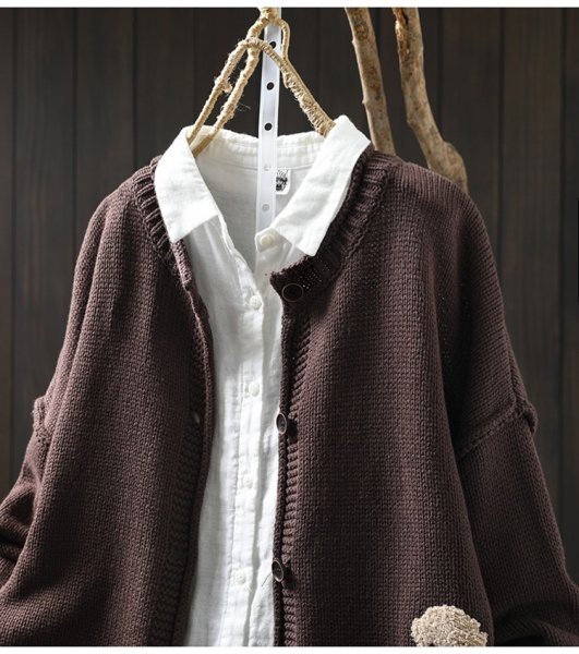 mn 2510 カーディガン アウター 羽織物 トップス チュニック ゆったり 綿100% ナチュラル 貼り付け柄2