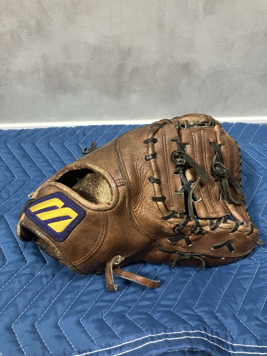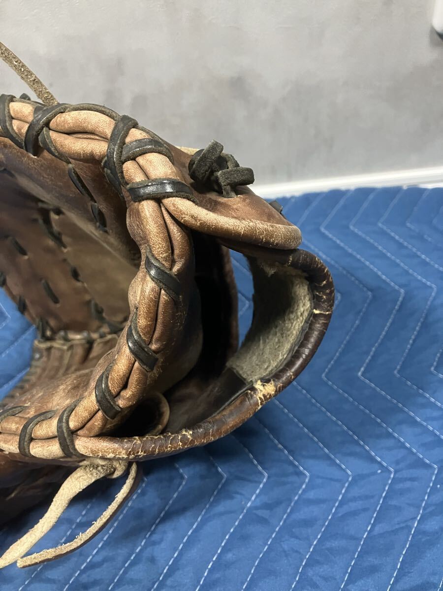 ユーズド、そしてロゴから年代みればわかると思いますが、思ったより汚いとか言われても対応できません。臭いもしかり、私は気になりませんが(一応家族にも確認してもらって)、古い革製品の臭いは確実にあるものと思ってください。(ていうか、野球し終わったら手ぐらいは洗うと思います)