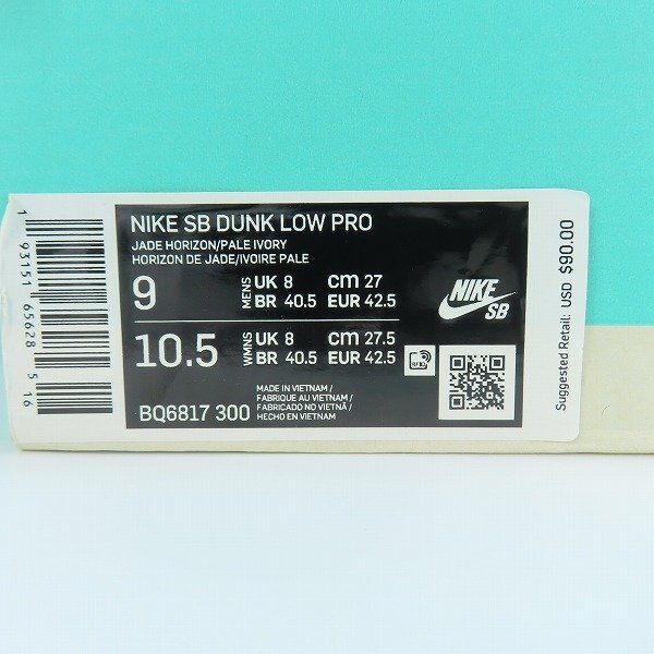 NIKE/ナイキ SB DUNK LOW PRO JADE HORIZON GREEN/ダンクロー ホライズングリーン BQ6817-300/27 /080 | |||||||||||||||||||||||||