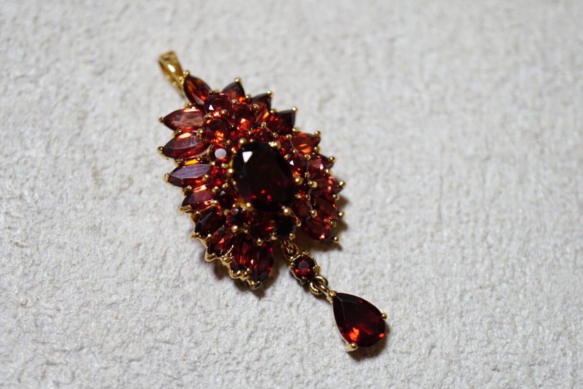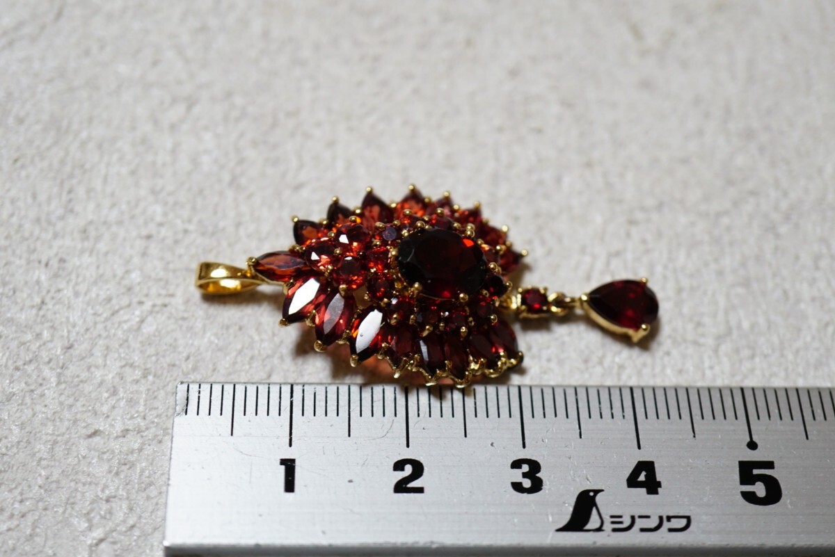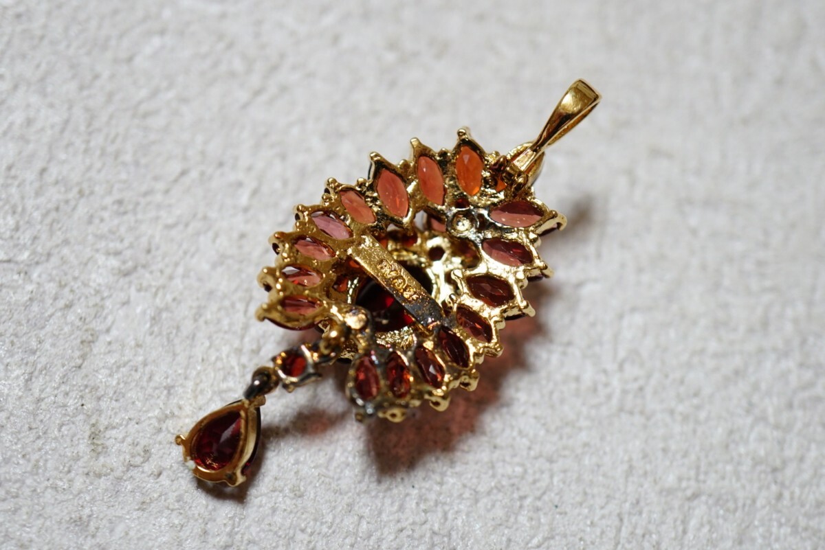 643 ガーネット ゴールドカラー ペンダント ネックレス ヴィンテージ アクセサリー SILVER 925刻印 宝石 色石 カラーストーン 装飾品