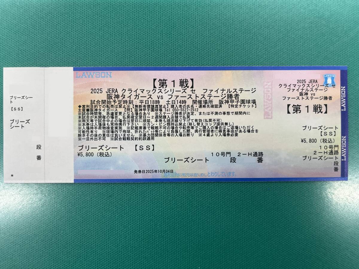 第1戦 10/15(水)ブリーズシート指定席 1枚 通路近 阪神甲子園球場 クライマックスシリーズ 阪神タイガース ②