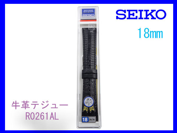 18mm 黒 R0261AL 牛革 テジュー型押 セイコー SEIKO 切り身 はっ水 ステッチ付 腕時計 ベルト 新品 未使用 正規品