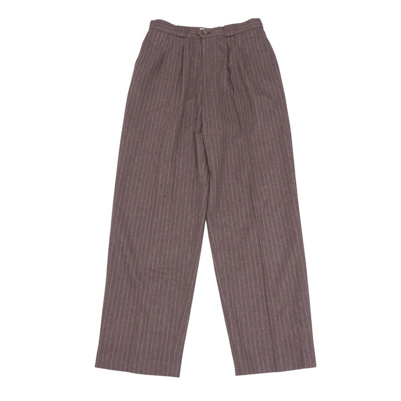 表記サイズ: 38 (※念の為、商品実寸をご参考下さい。) 商品実寸 総丈 :約108.5cm ウエスト :約77cm ヒップ幅:約53.5cm 股上 :約33.5cm 股下 :約76cm わたり幅:約32cm 裾幅 :約22cm |