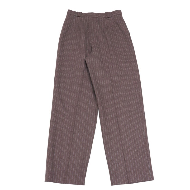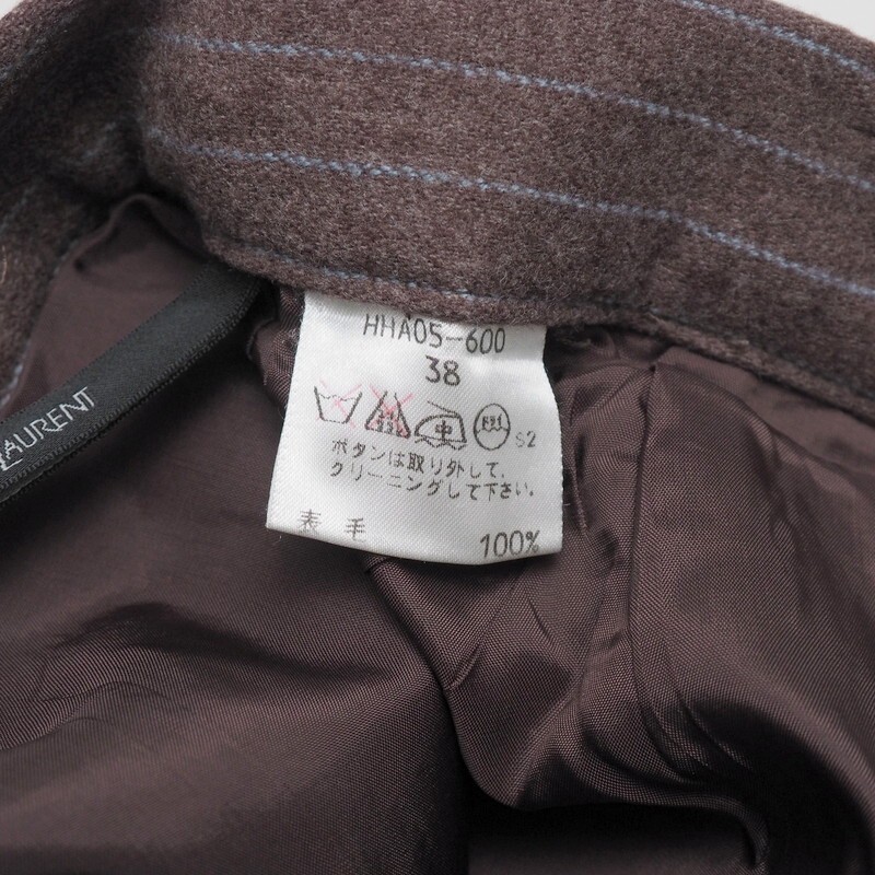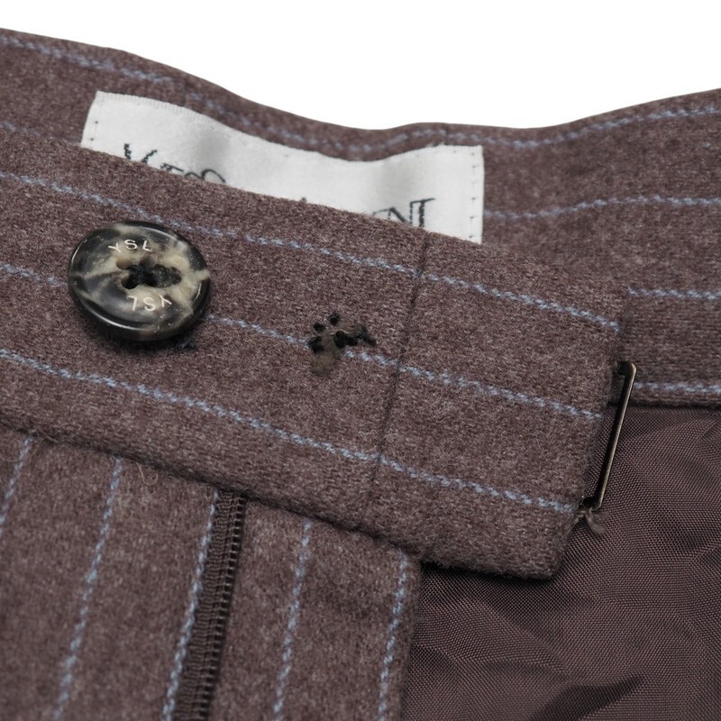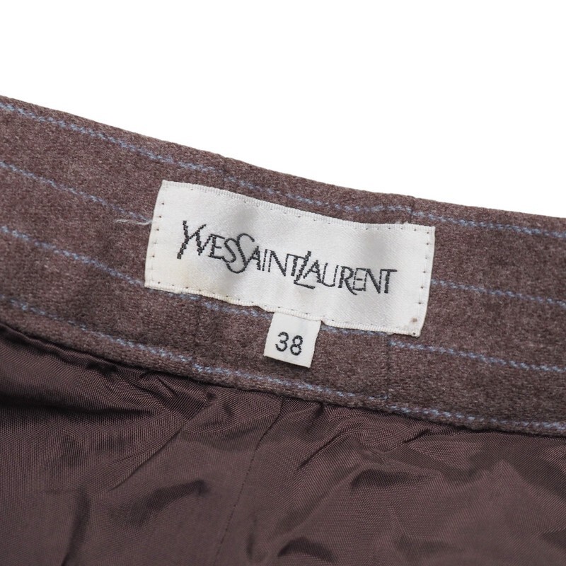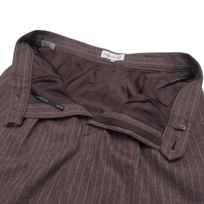 TJ3042〇Yves Saint Laurent イヴサンローラン*イタリア製生地使用*ウールカシミヤ*ストライプ柄*ワイドパンツ*サイズ38*ブラウン×ブルー | |||