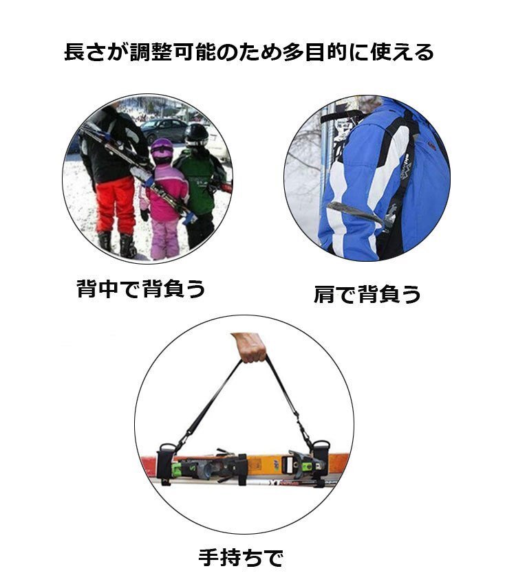 ストラップの長さも調整可能な、スキー板専用ショルダーキャリアストラップです