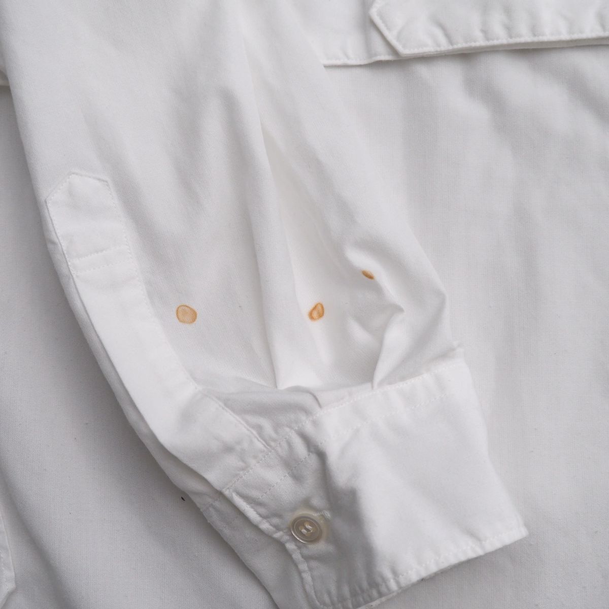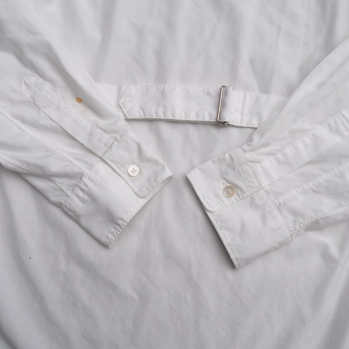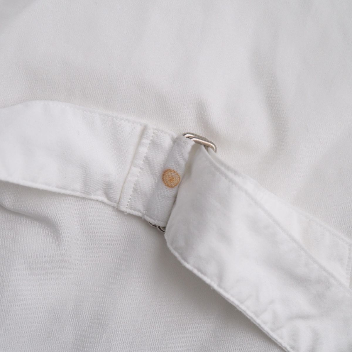 【コンディション詳細】 首周り、袖口、右袖先にうっすらと汚れ、アジャストベルト部分、右袖先付近に2箇所円状のシミがございますものの、ほか支障になるようなダメージなどはございません。 |