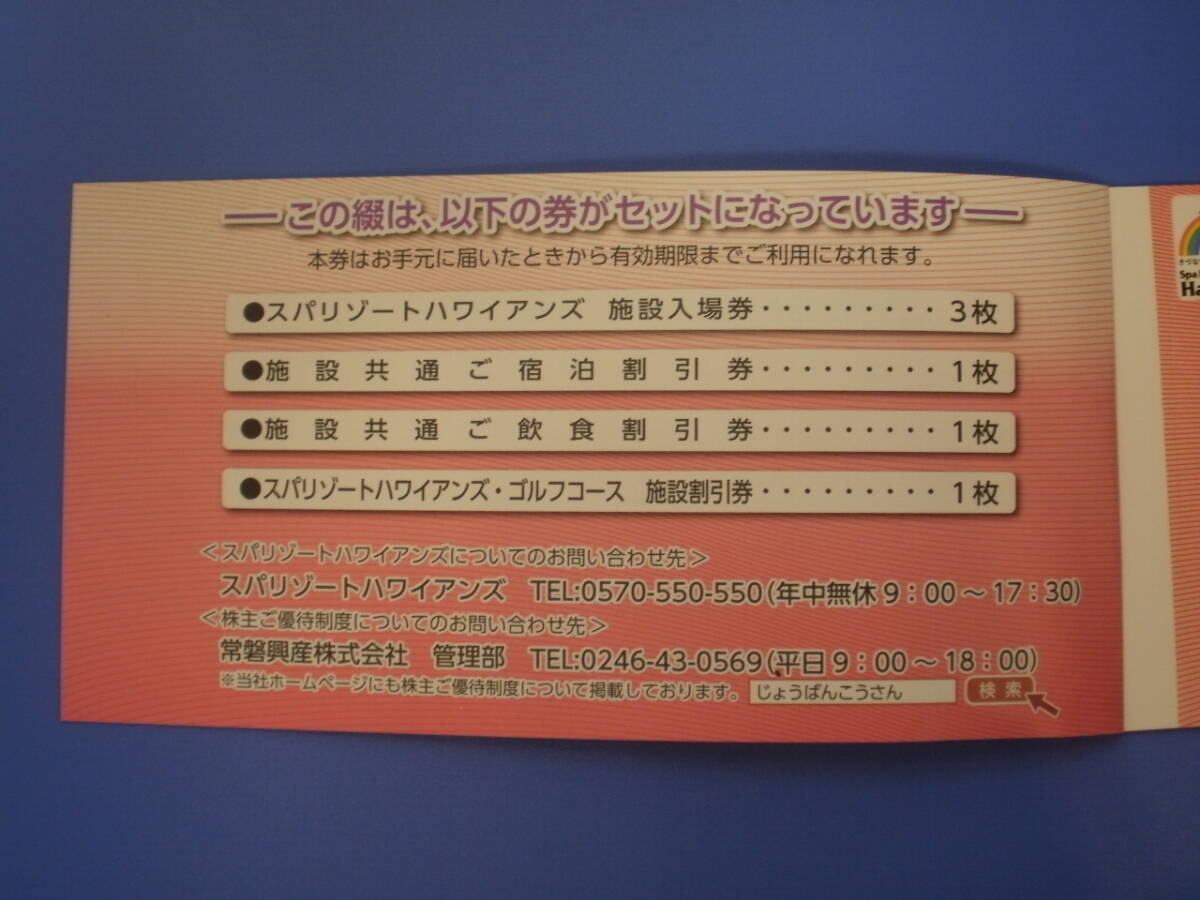 スパリゾートハワイアンズで使用できる「常磐興産株式会社」の株主優待券綴りの出品です。有効期限は2025年12月31日ですのでご注意ください。有効期限がある商品のため、落札後24時間以内にお支払いをお願いします。24時間以内にお支払いのない場合はキャンセルとさせていただきます。入金確認後24時間以内に定形郵便にて発送します。