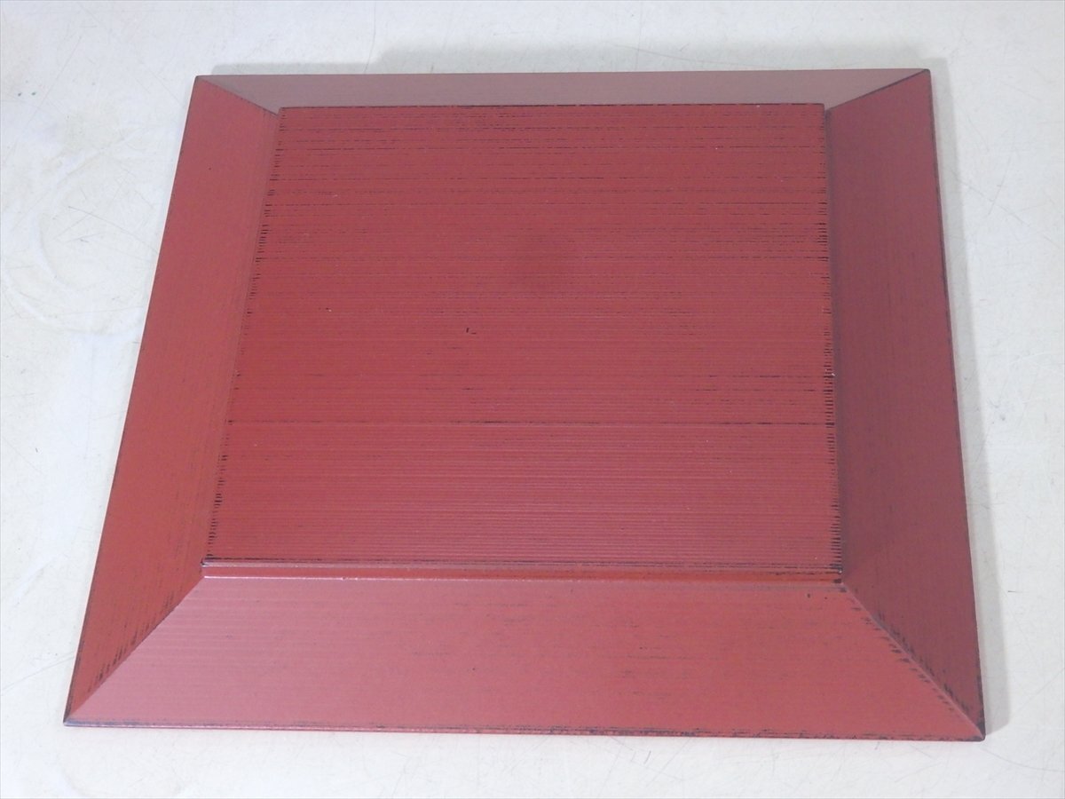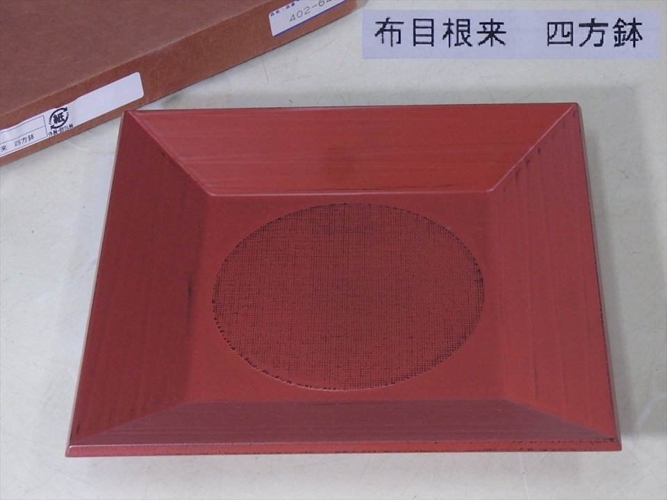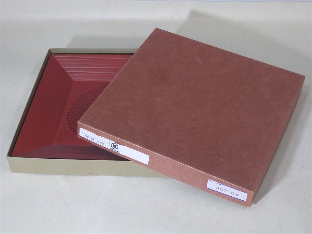 ★美品!【布目根来四方鉢 紙箱入り】木製 サイズ:22.7cm角 高さ2.6cm 漆器 茶器 四方盆 角盆 和食器 茶道具