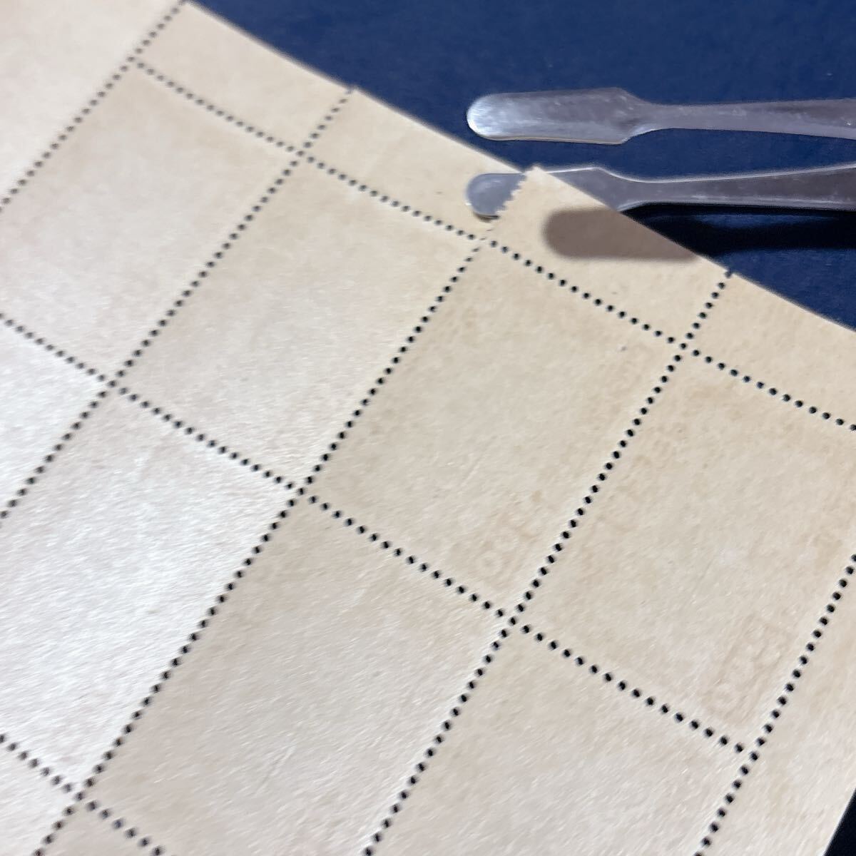 シート裏面にのりがあり、ヒンジ跡はありません。