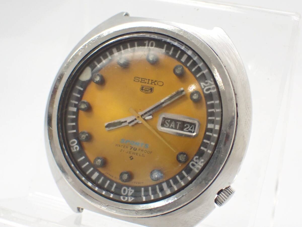 ★★★★★★★注意事項 必読★★★★★★★★★★★★ ●原価を大きく下回る場合取り消しする場合がございます。 ●削除された場合、悪い評価をいれずご理解頂ける方のみ 当方のオークションへご参加ください。 ★★★★★★★★★★★★★★★★★★★★★★★★★ ●ご理解いただけない方の入札を固くお断りいたします。 ★★★★★★★★★★★★★★★★★★★★★★★★★ ・落札後48時間以内にお支払いまでの手続きが可能な方 ・受け取り後、迅速にお受け取り通知可能な方 ・取引実績が10回以上の方、且つ悪い評価が5%以内の方 ※48時間以内にお支払いいただけない方、2回未満の取引の方は取り消しさせて頂きます。 ・中古品現状販売となる為、神経質な方はご遠慮ください。 ■商品の返品について ・お受け取り連絡後、もしくは受け取り期限超過をしての返品は受付出来かねます。 ・画像確認漏れ、商品説明確認不足による返品は一切受け付けておりません。 ・必ず画像、説明文をよくご確認の上ご入札ください。 ■発送方法について 指定方法以外の発送は対応しておりません。 原則、お支払い完了後、4日以内に発送させて頂きます。 商品管理上、原則同梱包は出来かねます。 稼働商品については、必ず発送前に動作確認を実施しております。 万が一、輸送中に電池切れを起こした場合においては、落札者様の御負担にて、電池交換をお願いいたします。 発送方法は下記の通りとなります。 低単価商品を落札後送料が高いと言ってる方がいらっしゃいますが 下記表にて定額料金を事前にご確認くださいませ。 ■佐川急便配送エリア 北海道/青森県 秋田県 岩手県/宮城県 山形県 福島県 https://www.sagawa-exp.co.jp/send/fare/faretable01.html ■ヤマト運輸配送エリア 上記以外のエリア https://www.kuronekoyamato.co.jp/ytc/search/estimate/hokkaido.html ■領収書の発行について 領収書の発行はいたしておりません。 ■入札取り消しについて 終了時刻6時間を切った場合、入札取り消し依頼のご対応を出来かねます。 よくご確認の上、入札下さいませ。 気持ちの良いスムーズなお取引を心がけております。 ご縁があった際は宜しくお願い申し上げます。 ----------------------------------------------------- 【商品詳細】 SEIKO セイコー AT/自動巻き メンズ腕時計 セイコー5 スポーツ 6119-7160 オレンジ文字盤 デイデイト 【ランク】 B ----------------------------------- ■参考/ランクの程度 N:新品 S:未使用品 A:極美品 AB:美品(使用感小) B:使用感中 C:使用感大 D:ジャンク扱い ------------------------- 【状態】 稼働品 時刻操作:可能 日付操作:可能 ガラス面小傷あり フェイス周り、裏蓋やや擦れ小傷あり 【発送サイズ】 北海道発 60サイズ 【付属品】 本体のみ --------------------------------------------------------- ※状態について 主観には個人差がある為 画像にてご判断頂きますようお願いいたします。 ※日差について 半日以上の日差については検査いたしておりません。 現状品としてご理解いただいた上でご入札ください。 | |||