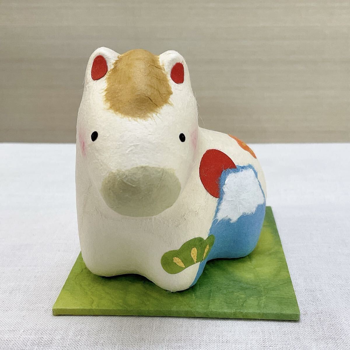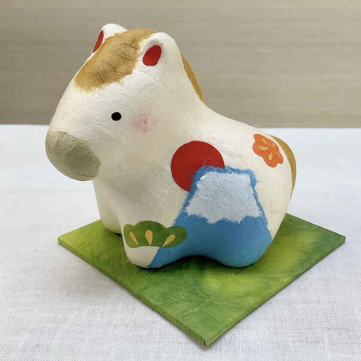 一枚、一枚丁寧に手作業で貼られた味わいある、ちぎり和紙の干支飾りです。馬体に富士山と初日の出がデザインされたふっくらとした干支飾りです。