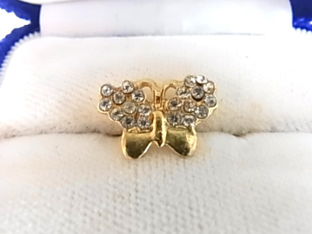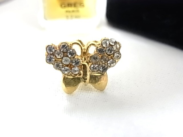 ビンテージ/ヴィンテージ ゴールドトーン 金色トーン クリアラインストーンがきらきら輝くビジュー 蝶々 バタフライ形 ピンバッジ♯