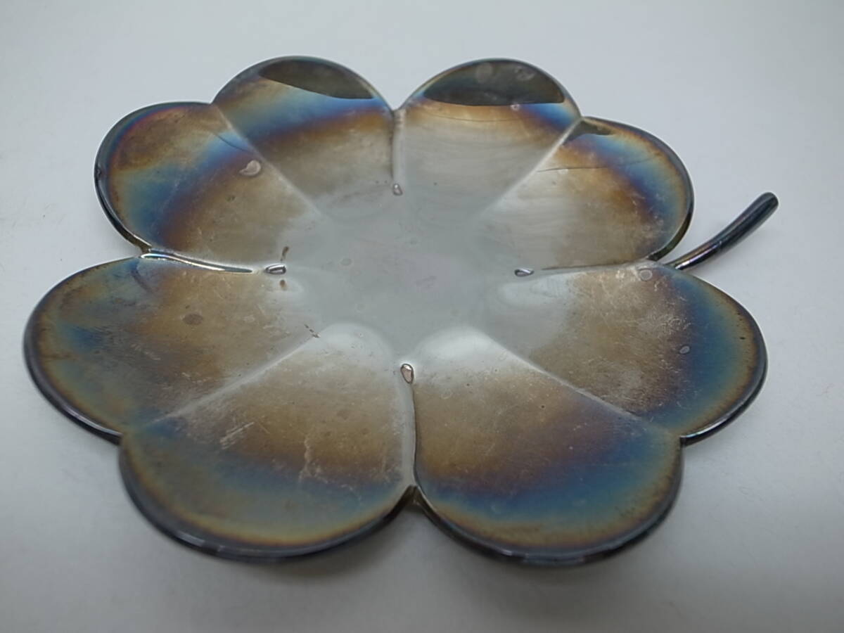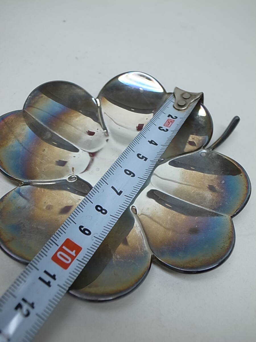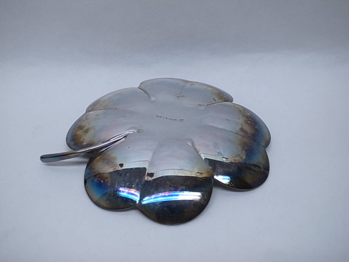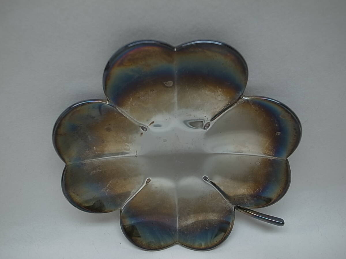 ☆フランスの老舗メーカー、クリストフルの幸運の四葉のクローバーのプレートです。銀器(めっき)です。アクセサリーや小物を置く、感じでしょうか。メッキですが銀ですので変色してしまっています。専用のクリーナーで綺麗になると思いますのでお手入れしてください。箱等はありません。