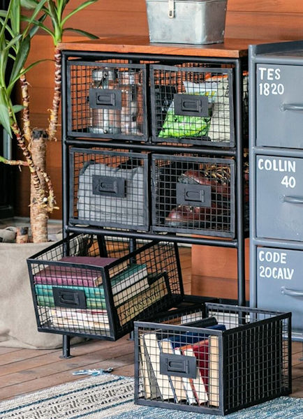◆インダストリアルテイスト漂うヴィンテージ調の収納家具
