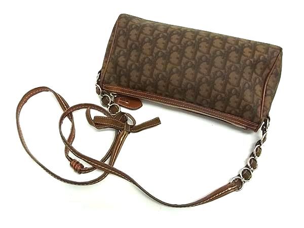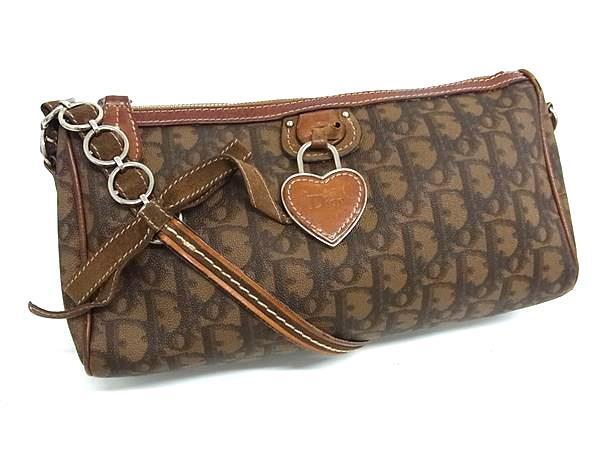 1円 ChristianDior クリスチャンディオール トロッター PVC×レザー ハート クロスボディ ショルダーバッグ 斜め掛け ブラウン系 FV3075