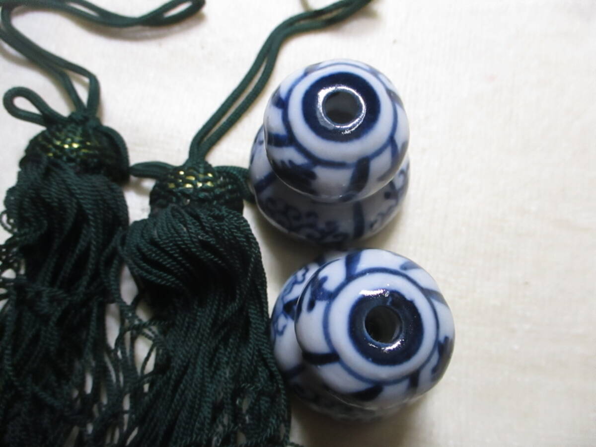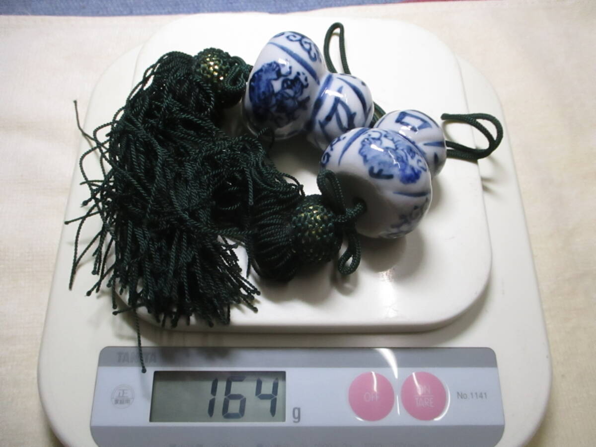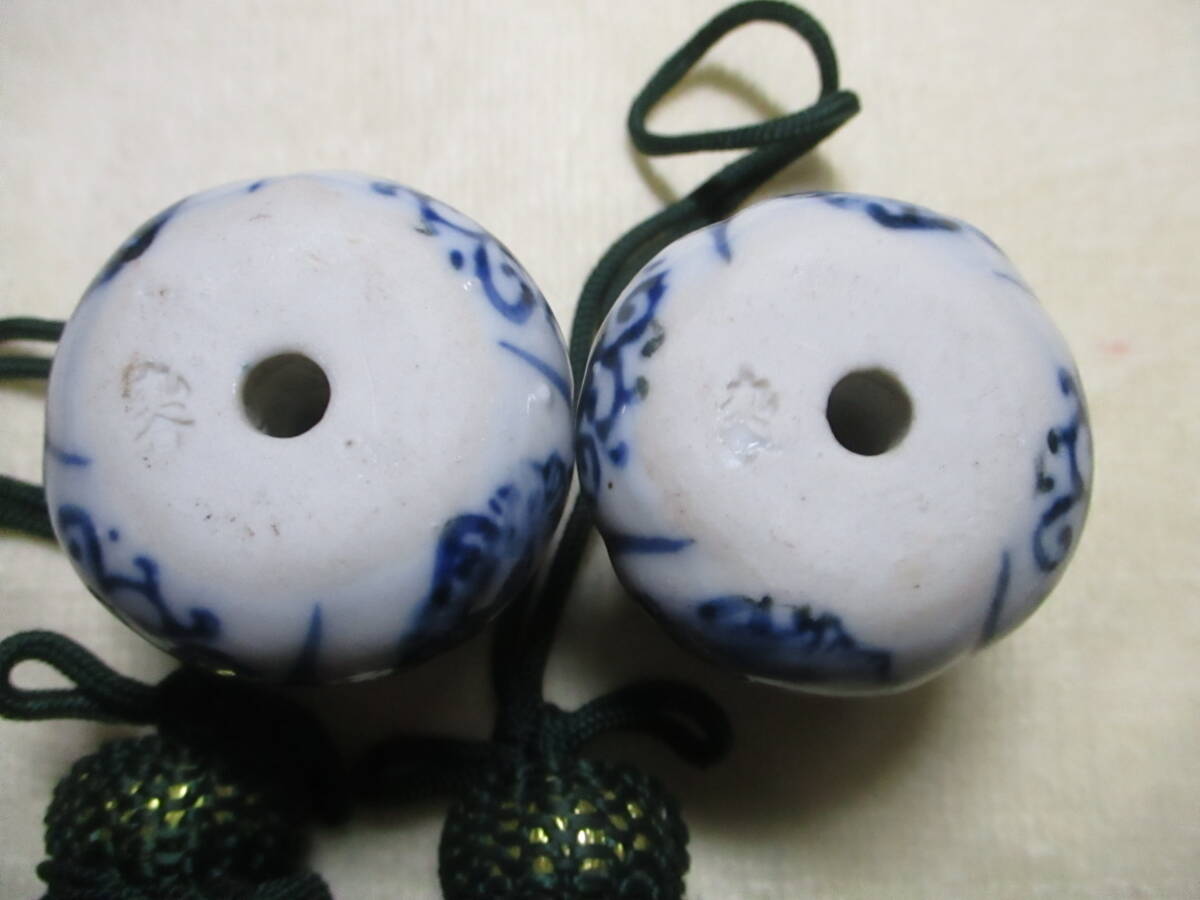 江戸時代の蔵から★立春大吉 染付 瓢箪形 ひょうたん 陶磁 九谷焼 風鎮 1対 4.5cm 164g 掛け軸道具★R