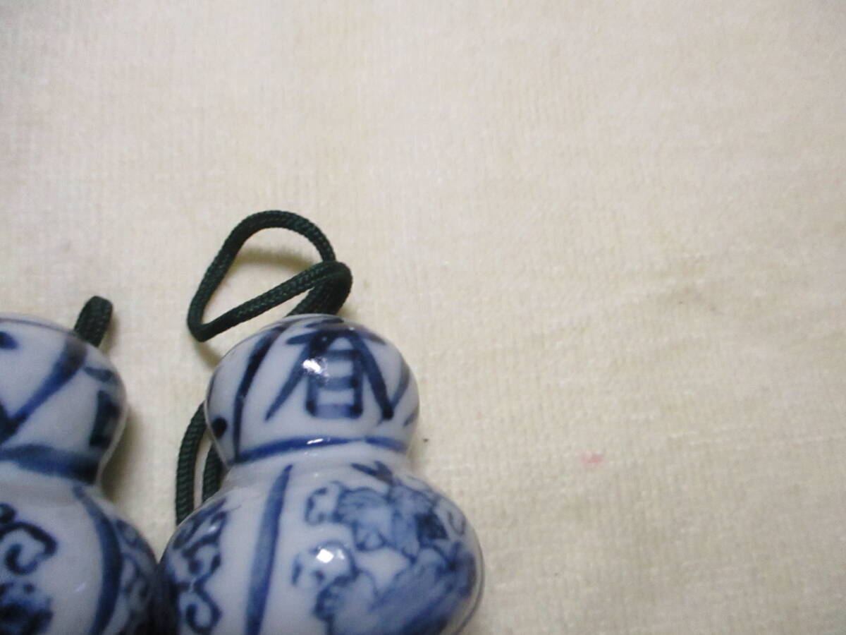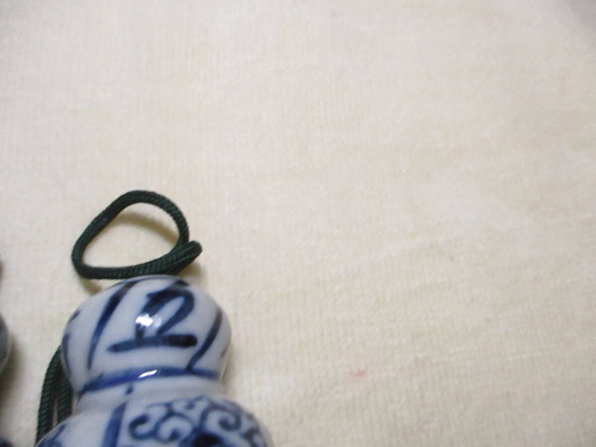 江戸時代の蔵から★立春大吉 染付 瓢箪形 ひょうたん 陶磁 九谷焼 風鎮 1対 4.5cm 164g 掛け軸道具★P