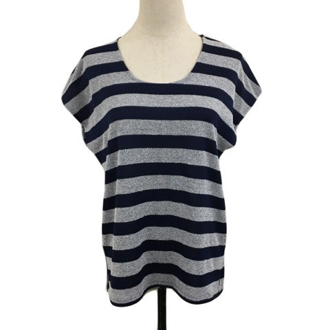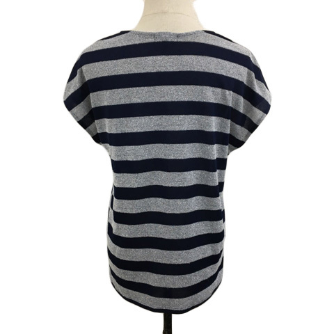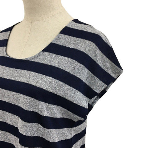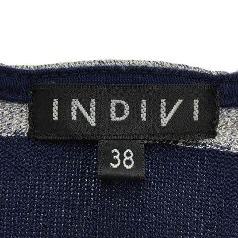 インディヴィ INDIVI カットソー ニット プルオーバー ラウンドネック ボーダー 半袖 38 グレー 紺 ネイビー レディース