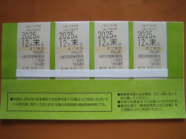 近鉄株主優待乗車券(沿線招待乗車券)4枚です。