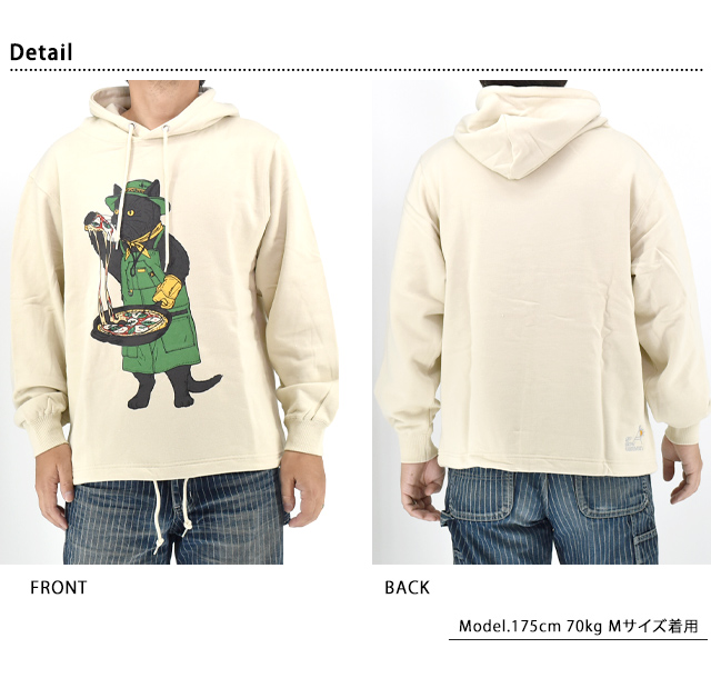 | 空紡糸裏毛 スキレットピザ猫 ヘムスピンドルフーディー◆go slow caravan GSC-M01722 | ||||||||||||||||||||