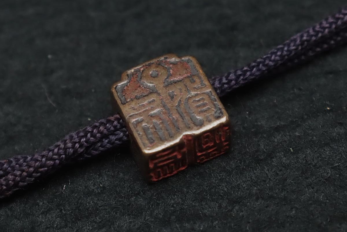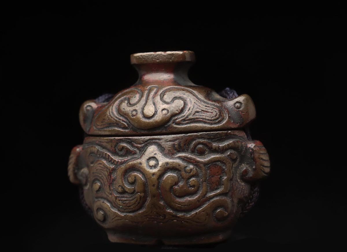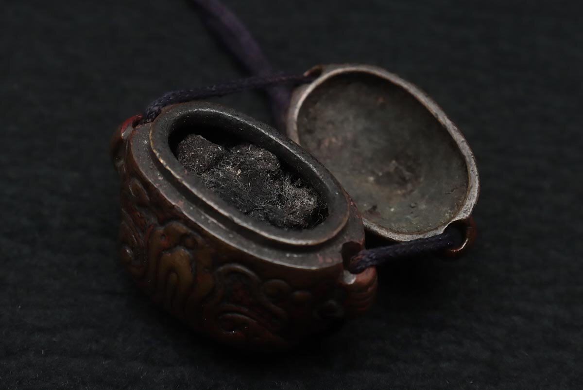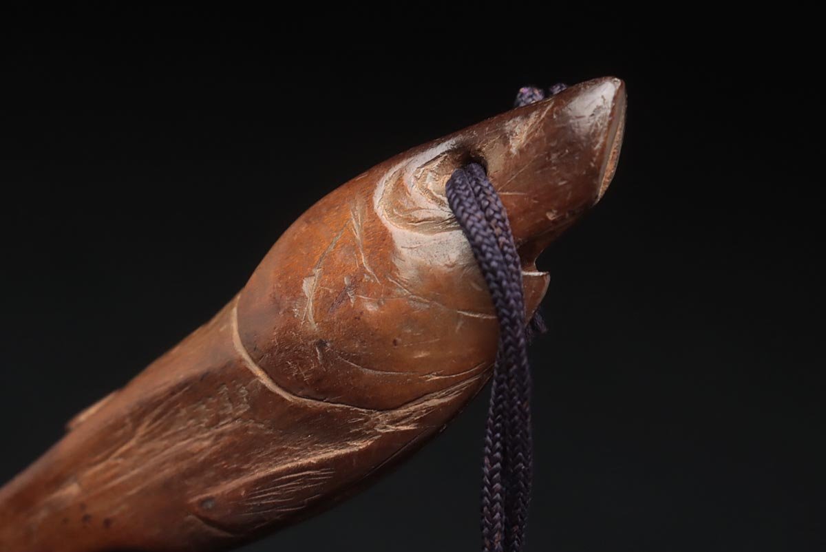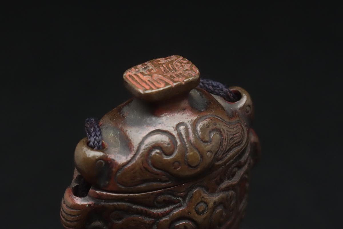 ◆ 時代提げ物 天然木根 魚根付/古銅饕餮紋墨入 印材付・樹根雕魚吊墜 銅墨盒和印章 携帯書道具 古美術品 ◆