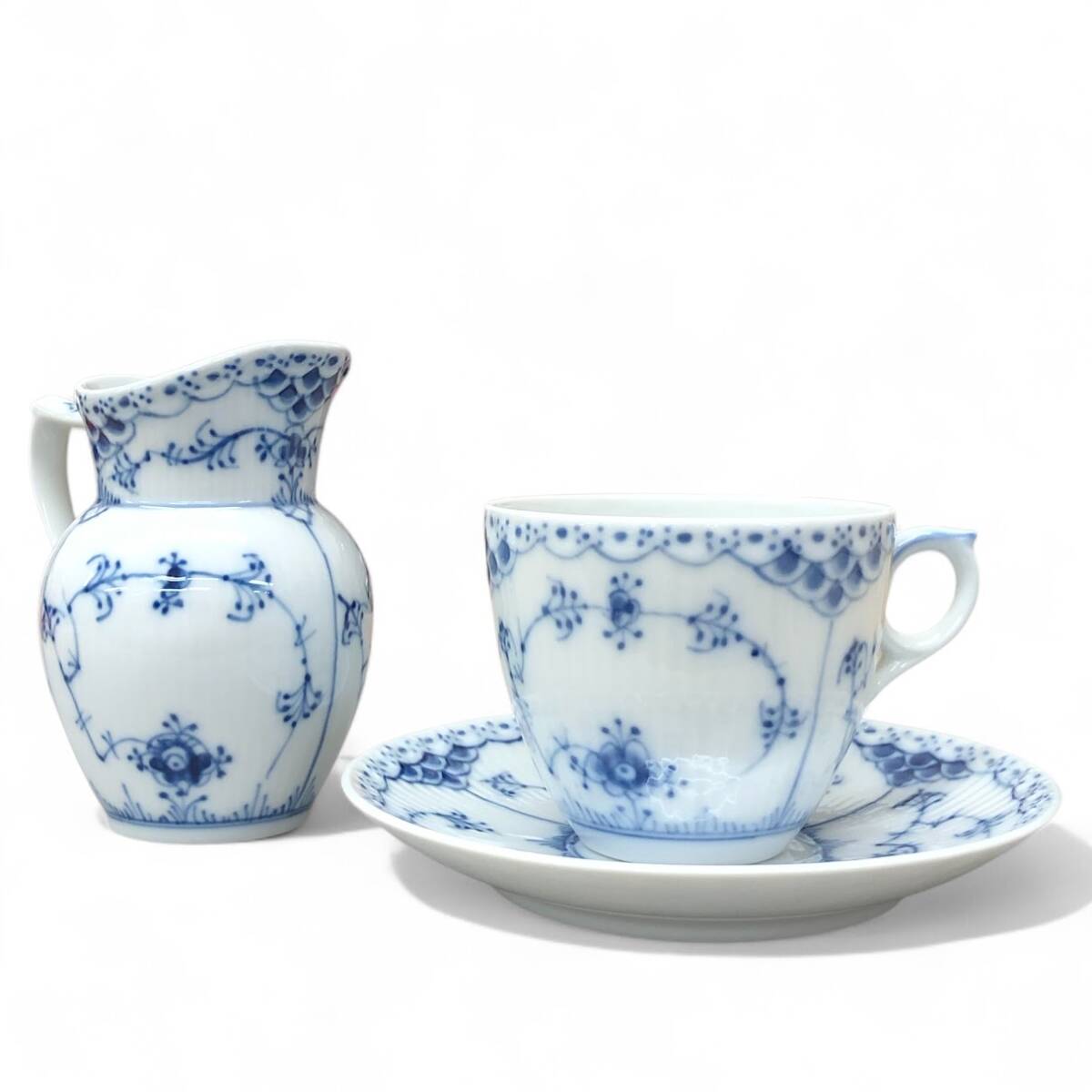 【ITD3N15FRBUJ】美品 ロイヤルコペンハーゲン ブルーフルーテッド カップ&ソーサー クリーマー ミルクポット セット 072/073/394