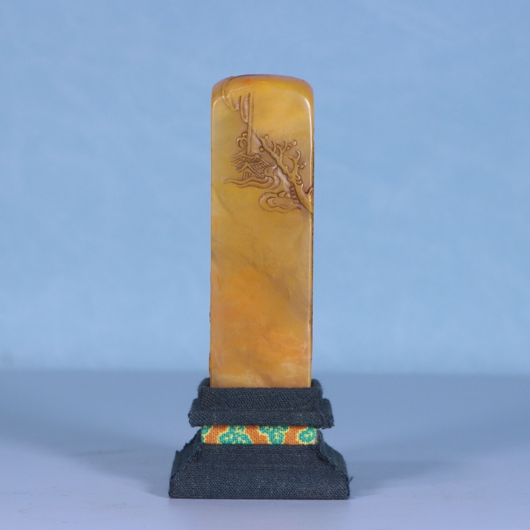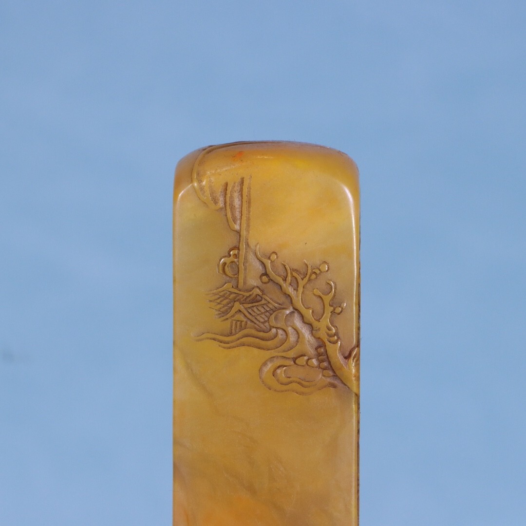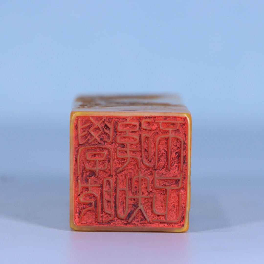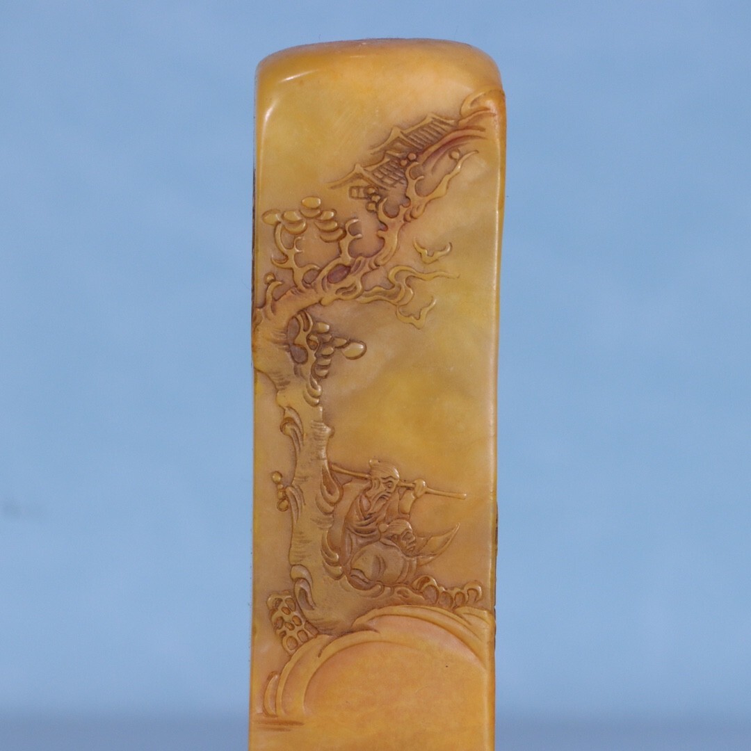 「清 友竹 老寿山石 田黄石彫り 人物故事 印章」極細工 擺件 古賞物 中国古美術 旧蔵出