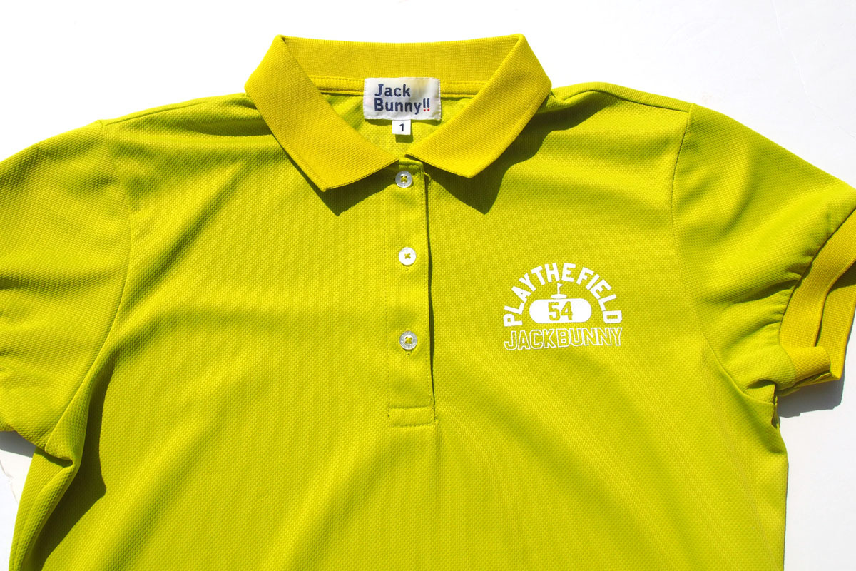 <ジャックバニー>らしくPOPなカラーに"PLAY THE FIELD 54"の大きなロゴプリントがプリントされている半袖ポロシャツです。