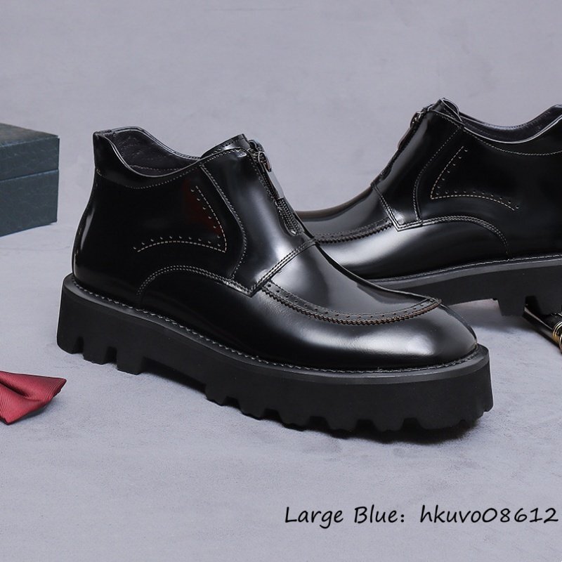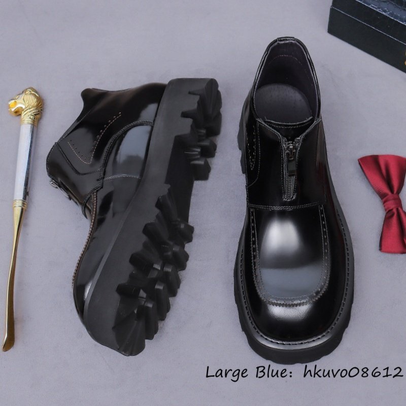 定価12万■マーティンブーツ メンズ 光沢レザーブーツ 職人手作り ショートブーツ イギリス風 厚底 本牛革 サイドジップ ブラック 27.5cm