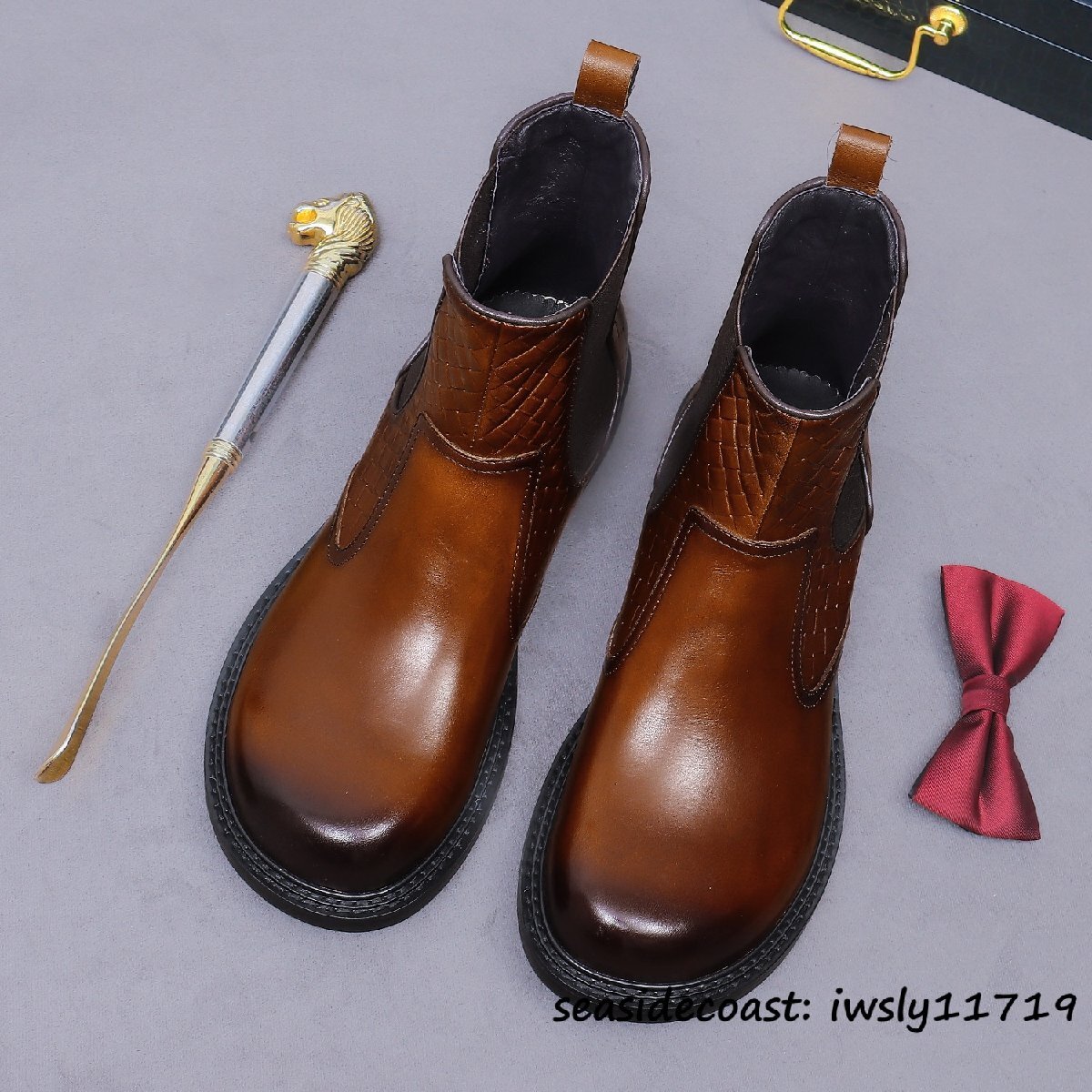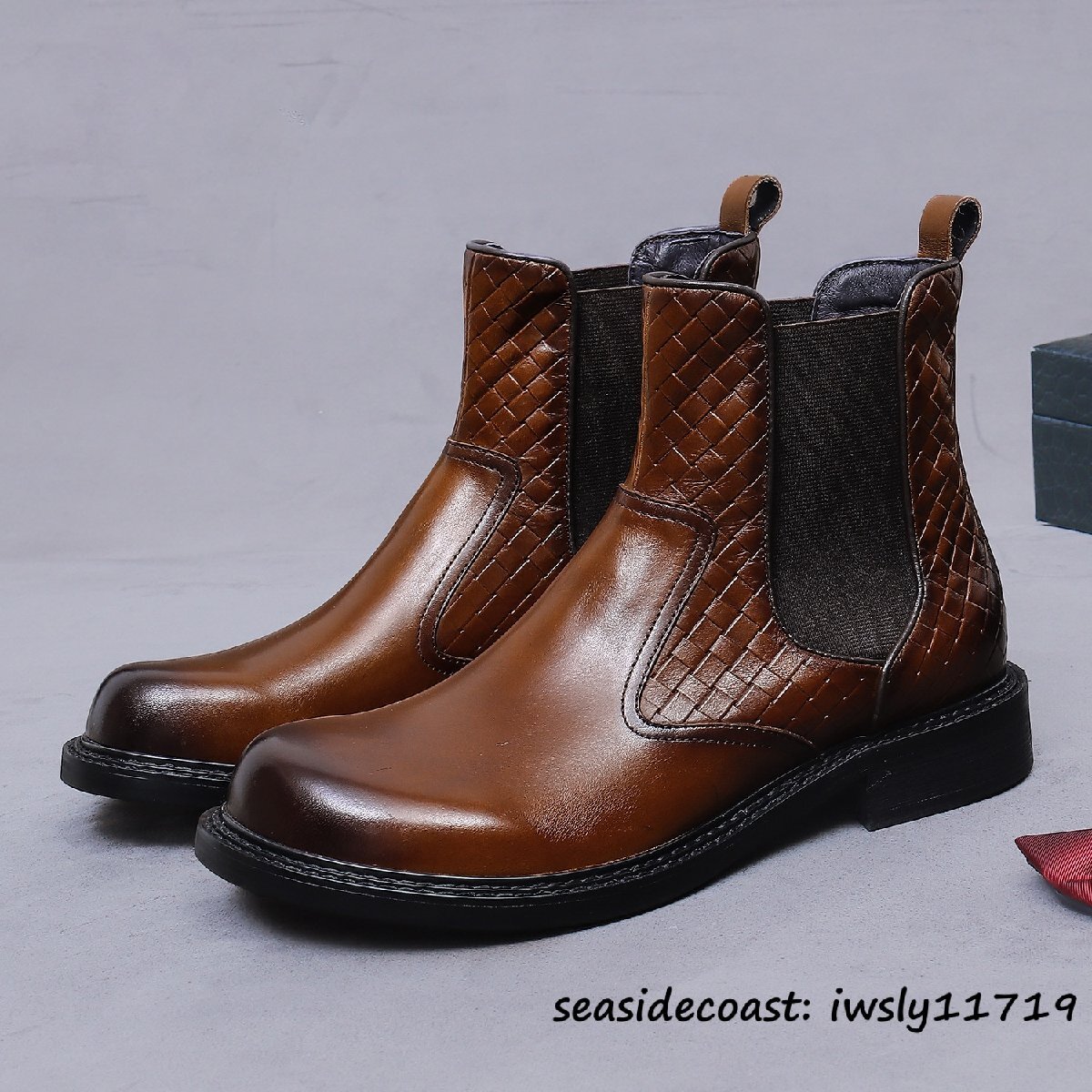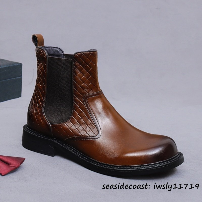 最上級◆メンズ チェルシーブーツ 本革 高級牛革 イギリス風 マーティンブーツ ビジネスシューズ ショートブーツ ブーツ ブラウン 27.5cm
